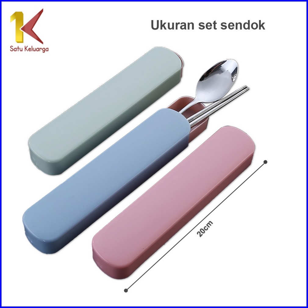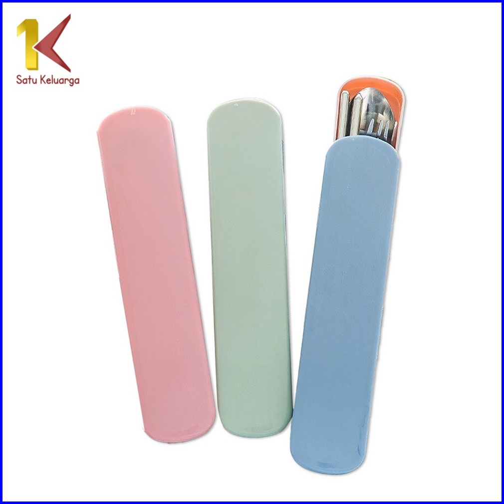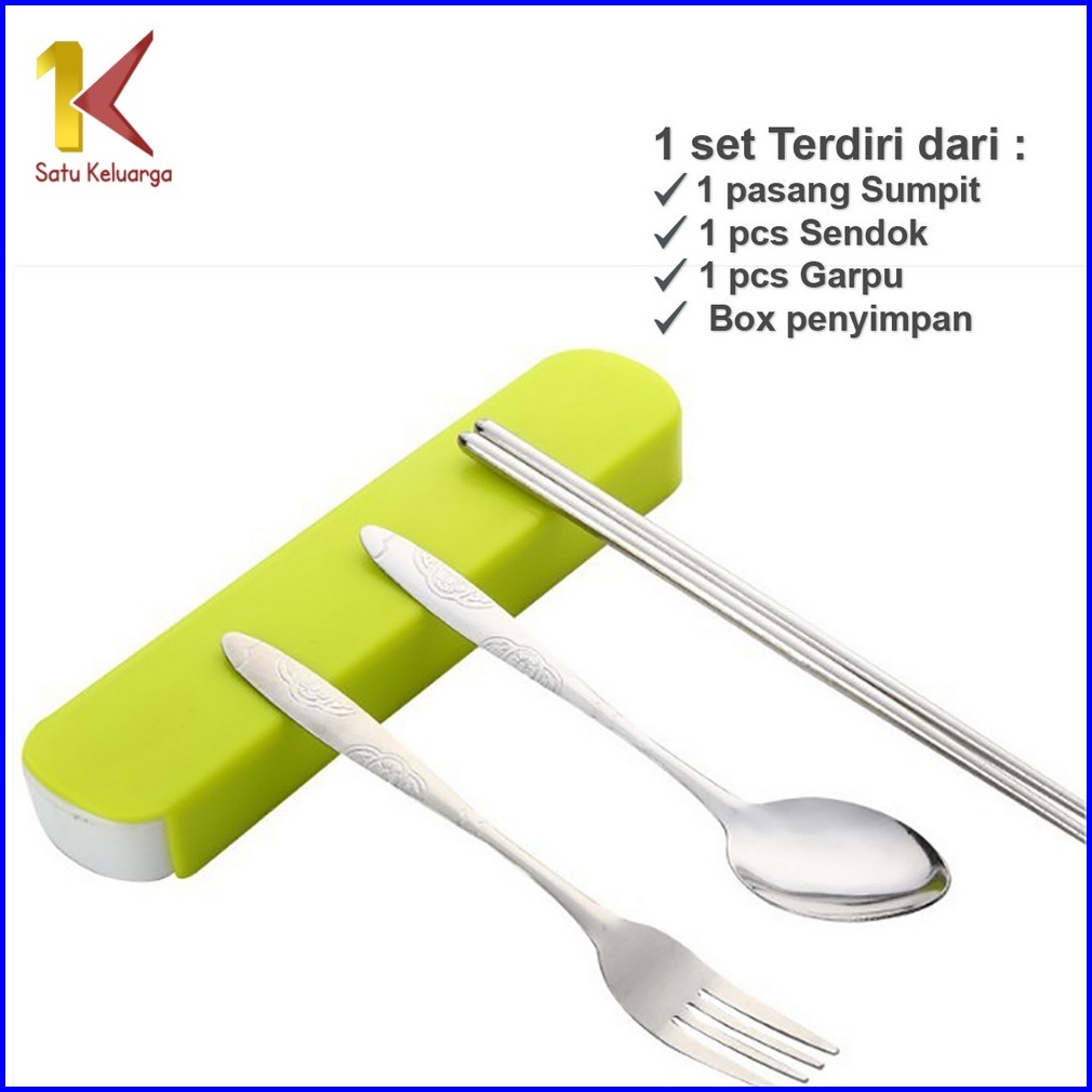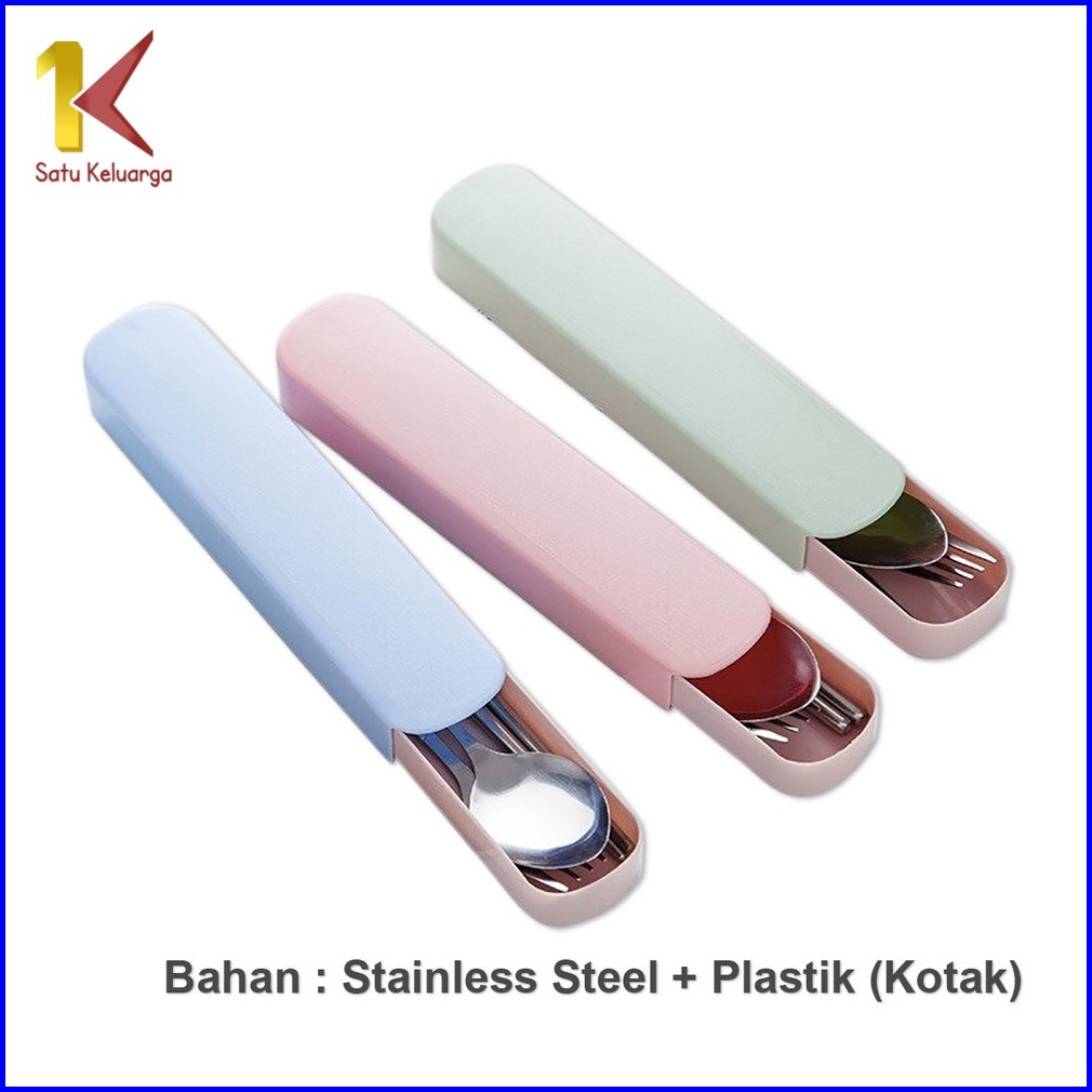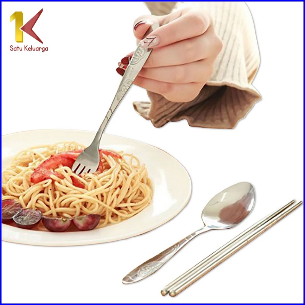 Satu Keluarga Sendok Set 3in1 C495 Alat Makan Sendok Garpu Sumpit Set Stainless Steel Portable Dengan Kotak Praktis