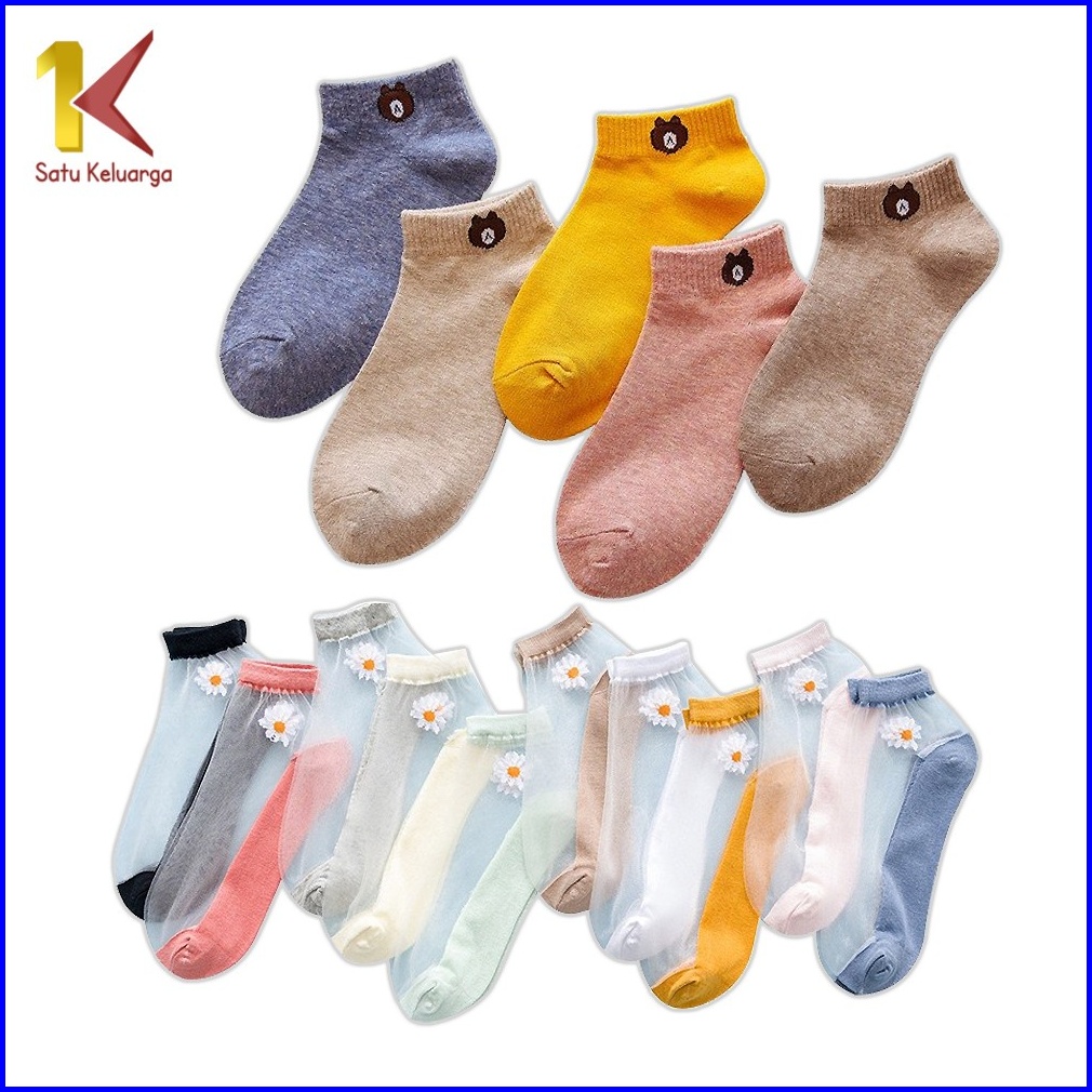 Satu Keluarga Kaos Kaki P32-33 Kaus Kaki Wanita Pria Motif Bear Kaos Kaki Ankle Korea Daisy Dewasa Pendek
