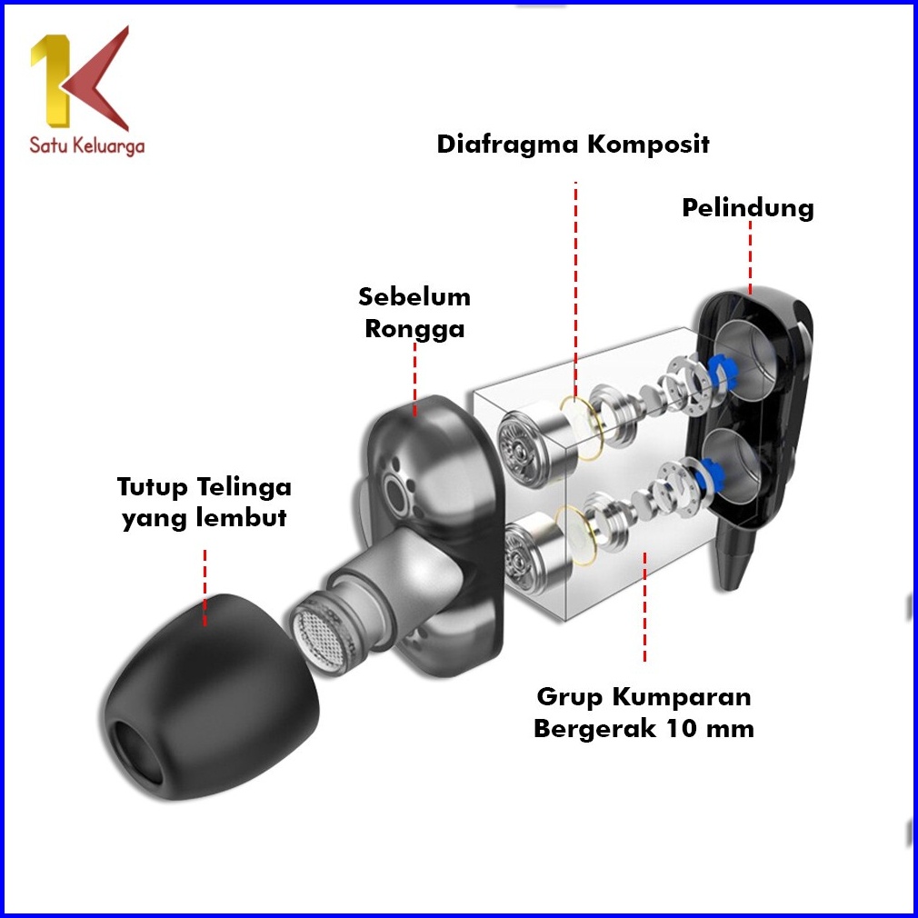 Satu Keluarga Headset Gaming Dual Hifi Stereo Bass C518 Earphone In Ear Hendset Sport Superbass Hedset Musik Extra Bass