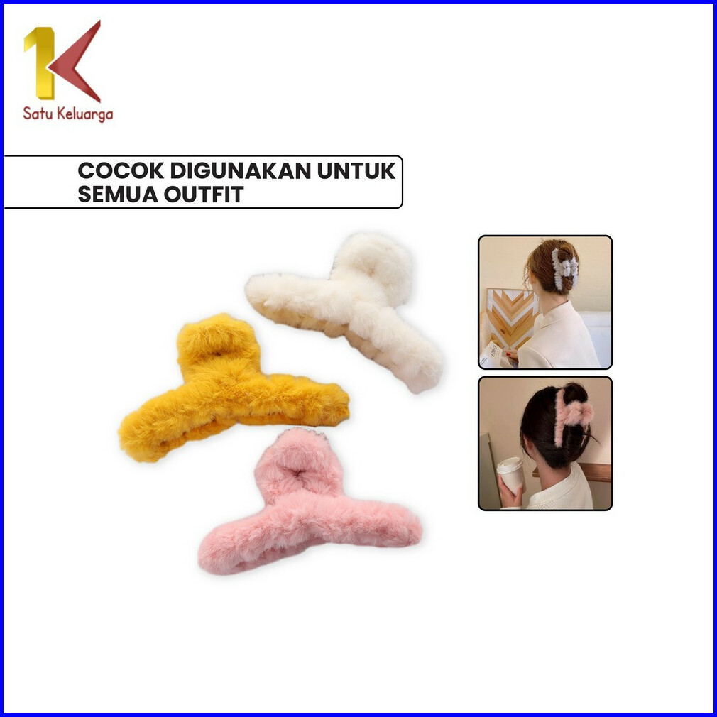 Satu Keluarga Jedai Jepit Rambut Bulu Wanita Korea C1055 Jepitan Salon Soft Aksesoris Rambut Polos
