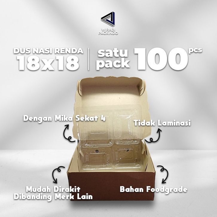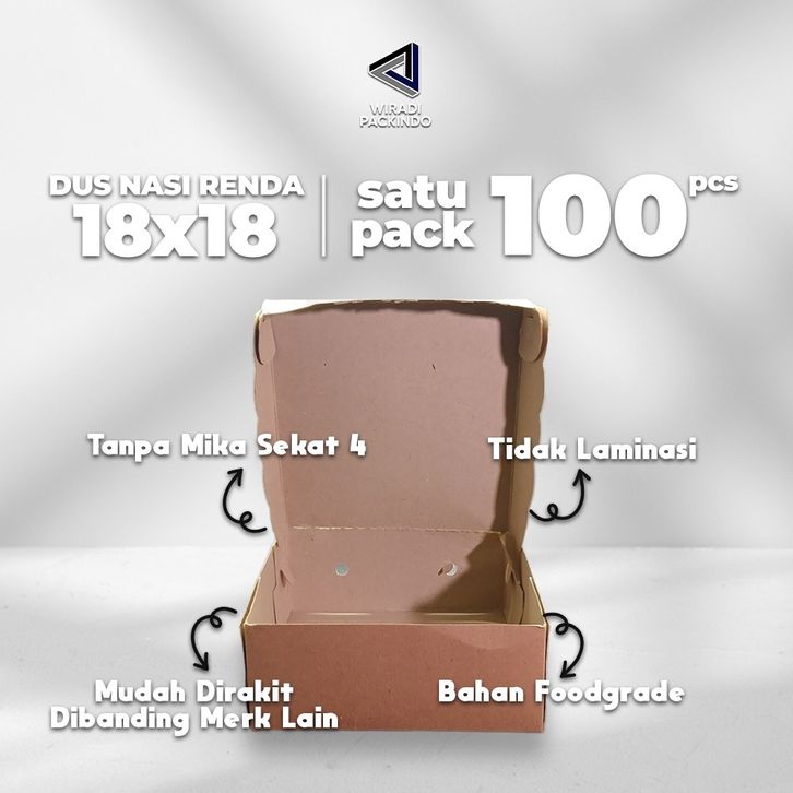 PROMO 100 PCS Box Dus Nasi Kraft Renda R8 18x18 Kotak Katering 310gsm