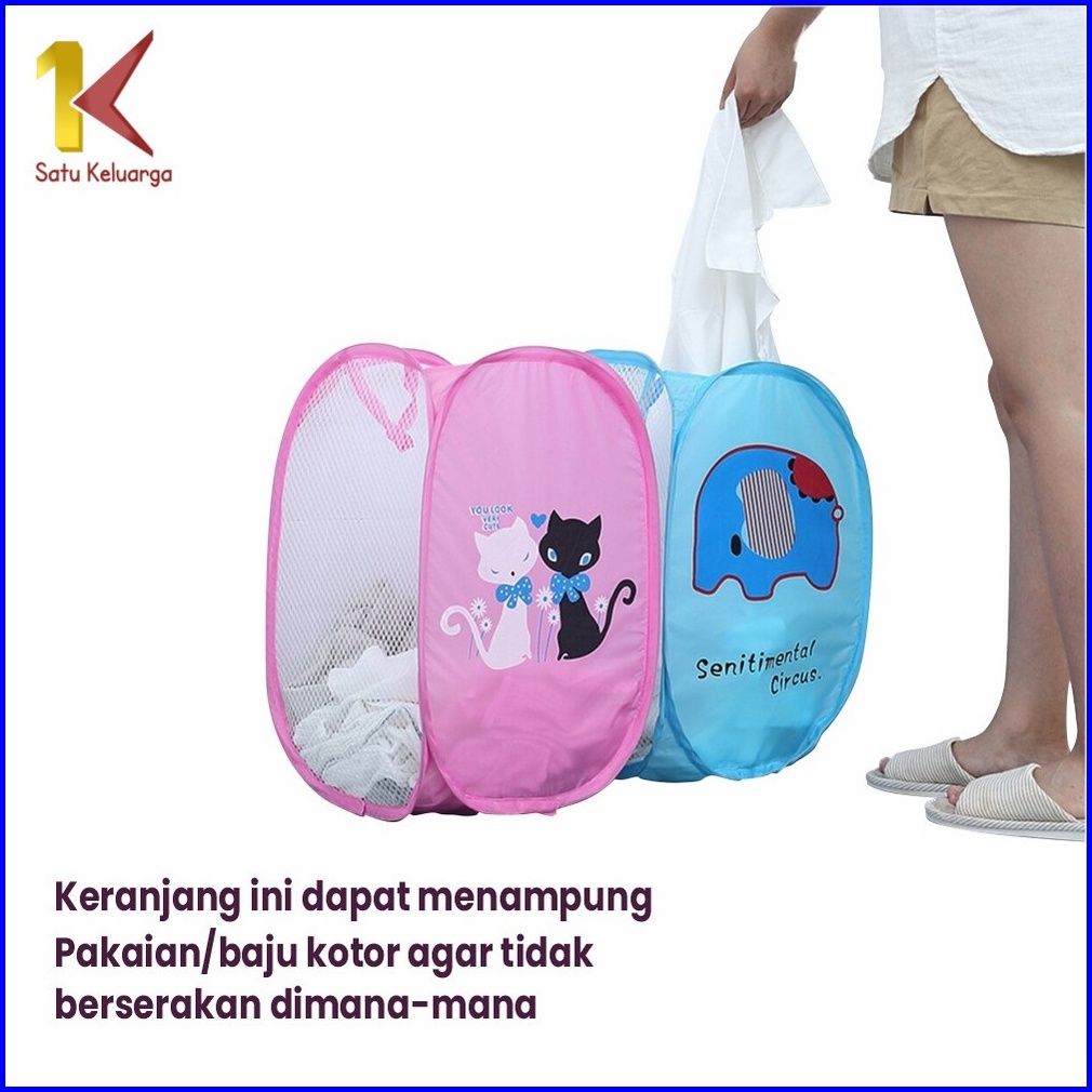 Satu Keluarga Keranjang Baju Kotor Lipat Karakter C500 Keranjang Laundry Bag Keranjang Cucian Portable Serbaguna