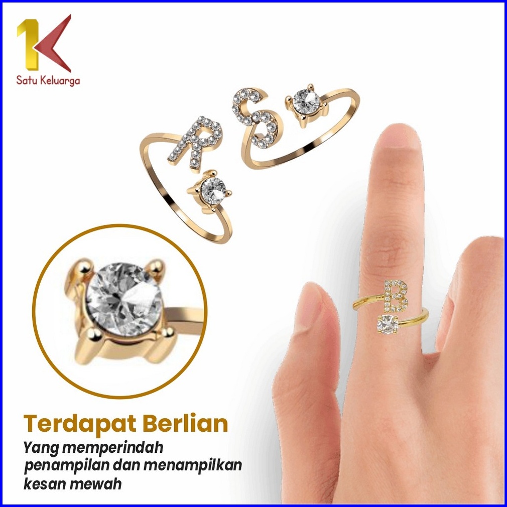 Satu Keluarga Cincin Huruf Stainless Inisial Nama K59 Cincin Abjad Huruf A-z Wanita Fashion Korea Cincin Alphabet