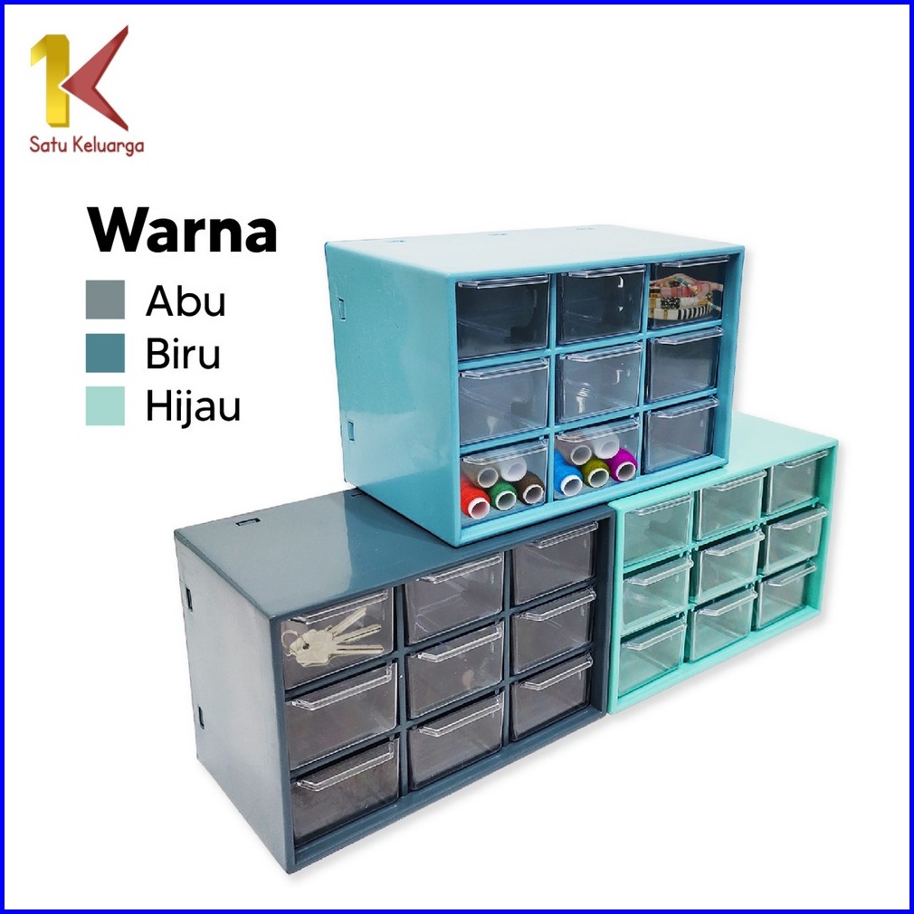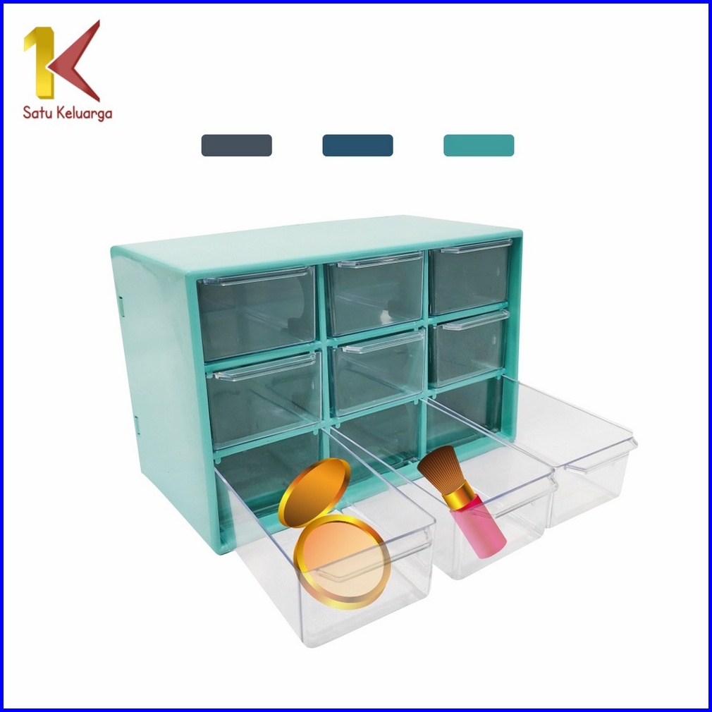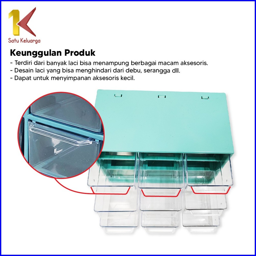 Satu Keluarga Kotak Laci Perhiasan Kotak Aksesoris Mini 9 Sekat C804 Storage Box Kotak Penyimpanan Serbaguna Laci Mini L