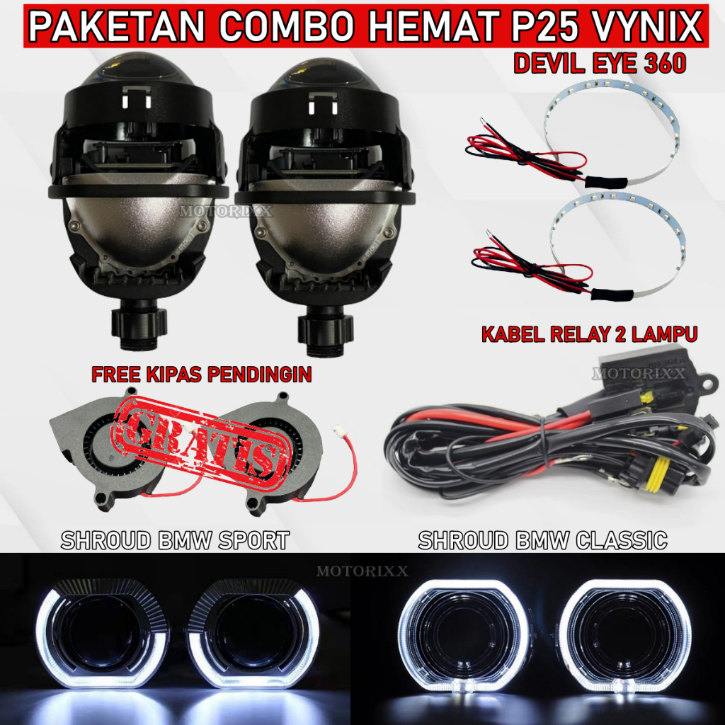 PAKET DOUBLE BILED VINYX P25 2,5 INCH ORIGINAL PLUS RING SHROUD PLUS DE PLUS RELAY SET PNP SET LENGKAP BILED VINYX P25 M