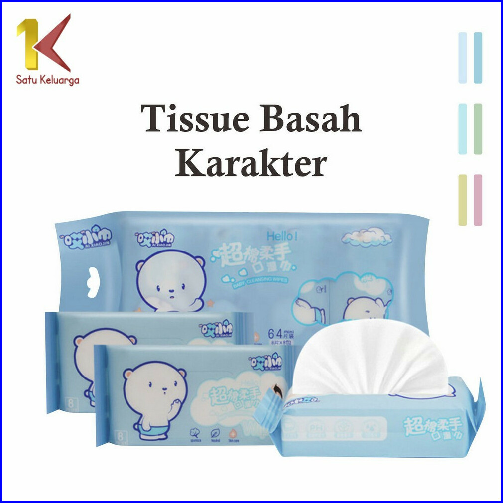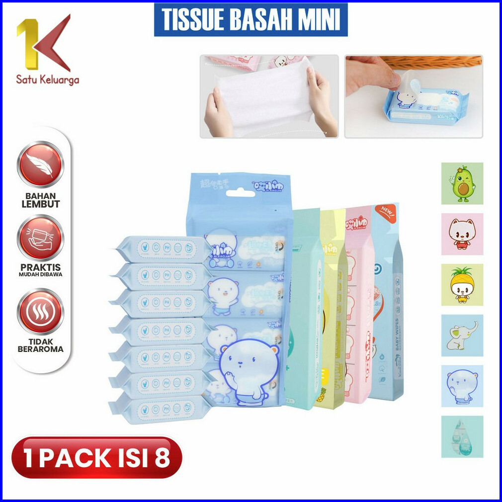 Satu Keluarga Tissue Basah Mini Karakter Travel 8in1 C949 Tissue Basah Travel 1pack Isi 8pcs Tisue Basah Bayi Bebas Alko
