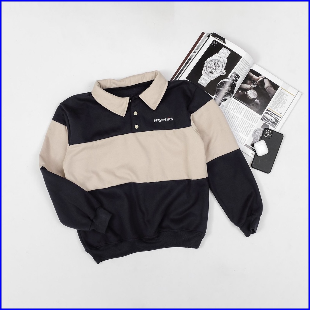 Prayerfaith - Crewneck Combinasi Colour Cream Navy Matt Fleece