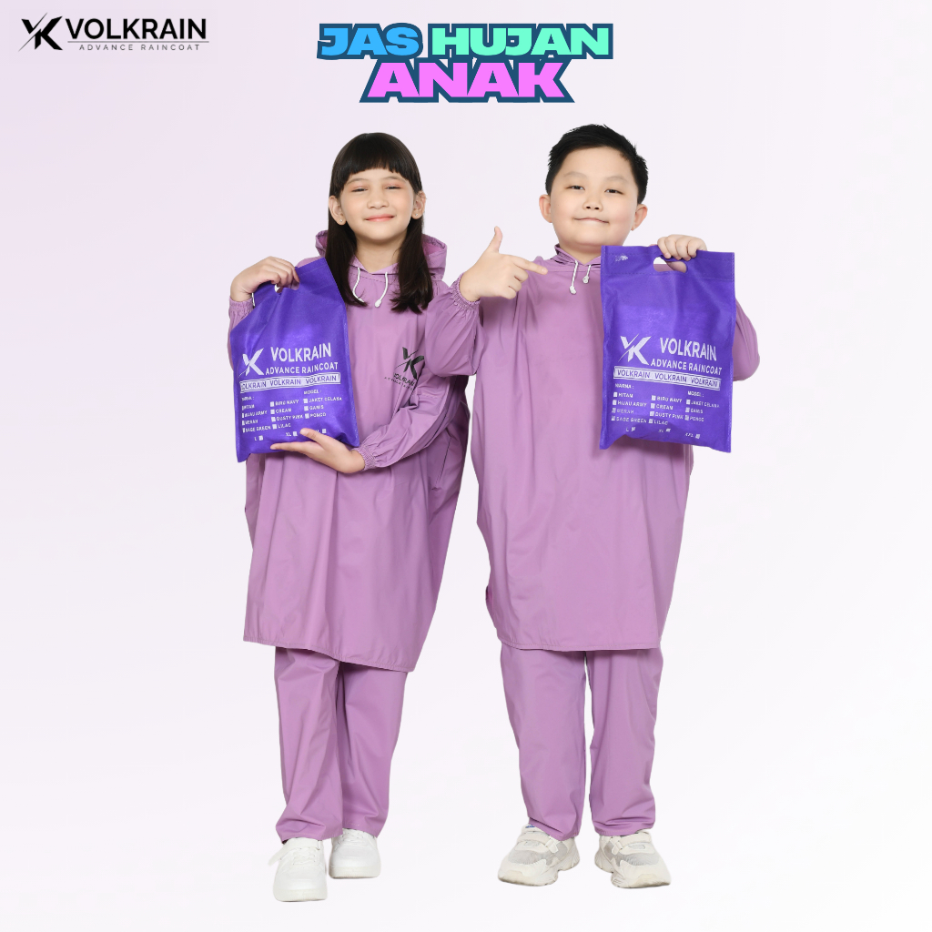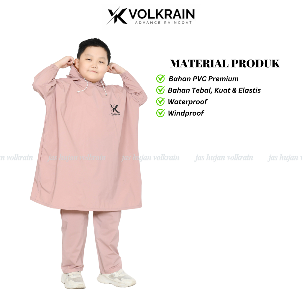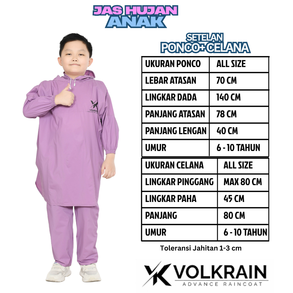 Volkrain Jas Hujan Anak Setelan Ponco Celana Bahan Tebal Anti Rembes