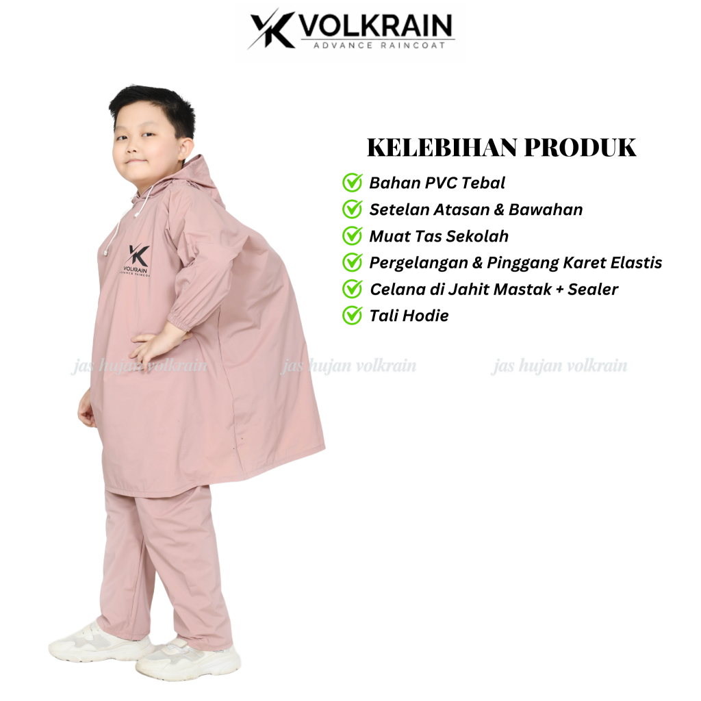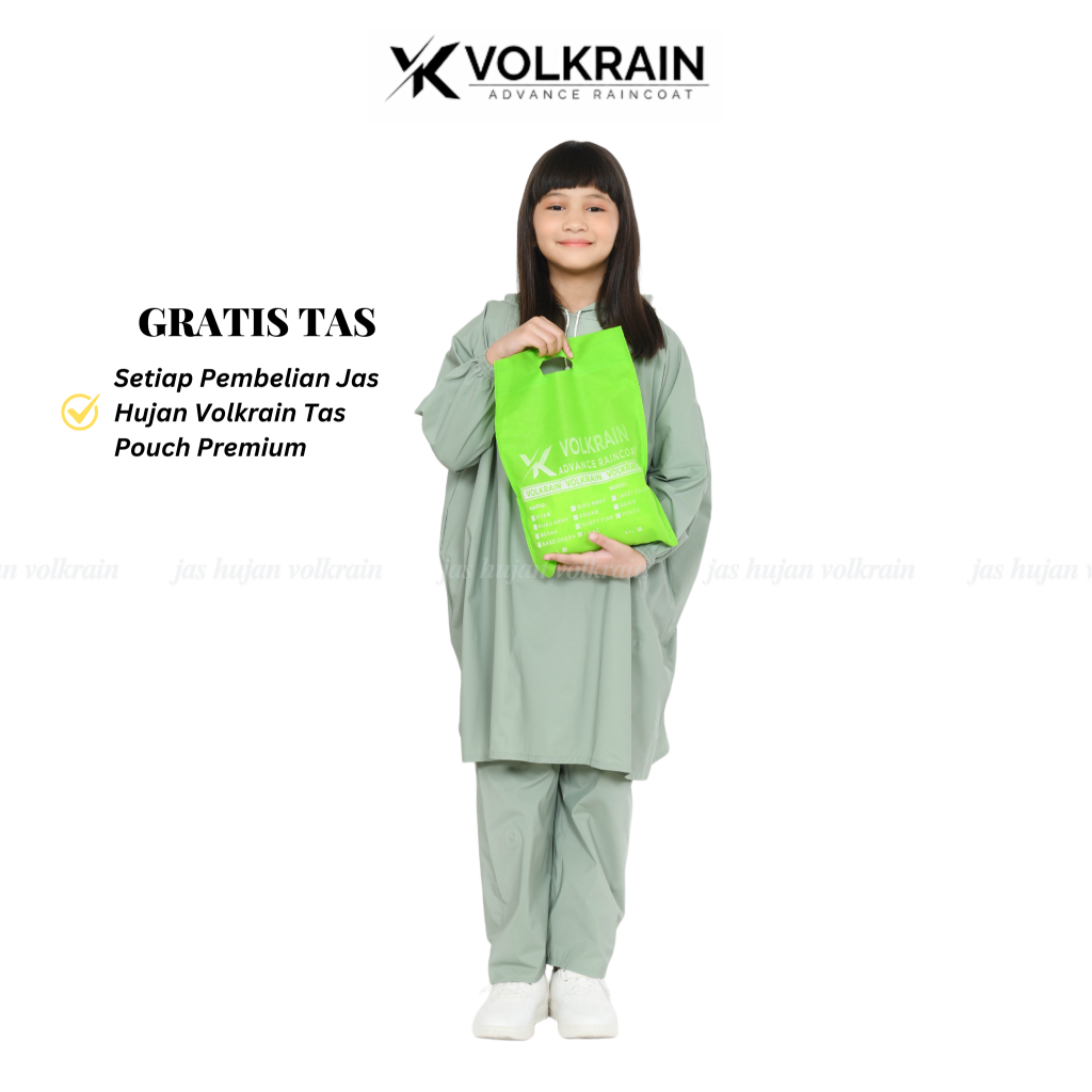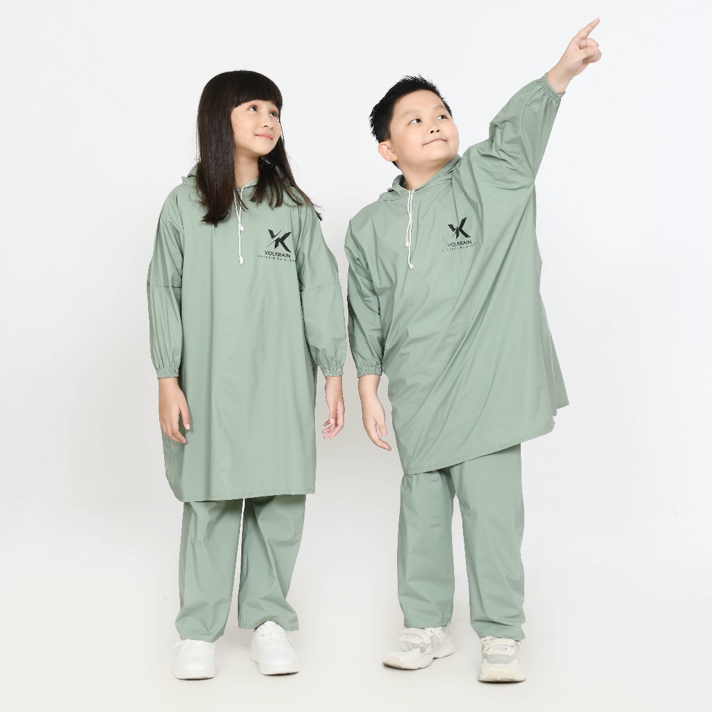 Volkrain Jas Hujan Anak Setelan Ponco Celana Bahan Tebal Anti Rembes