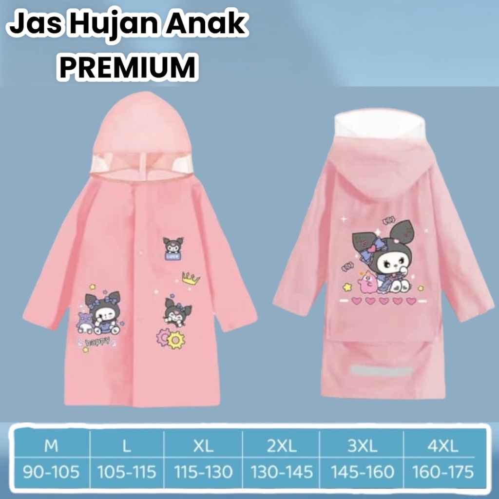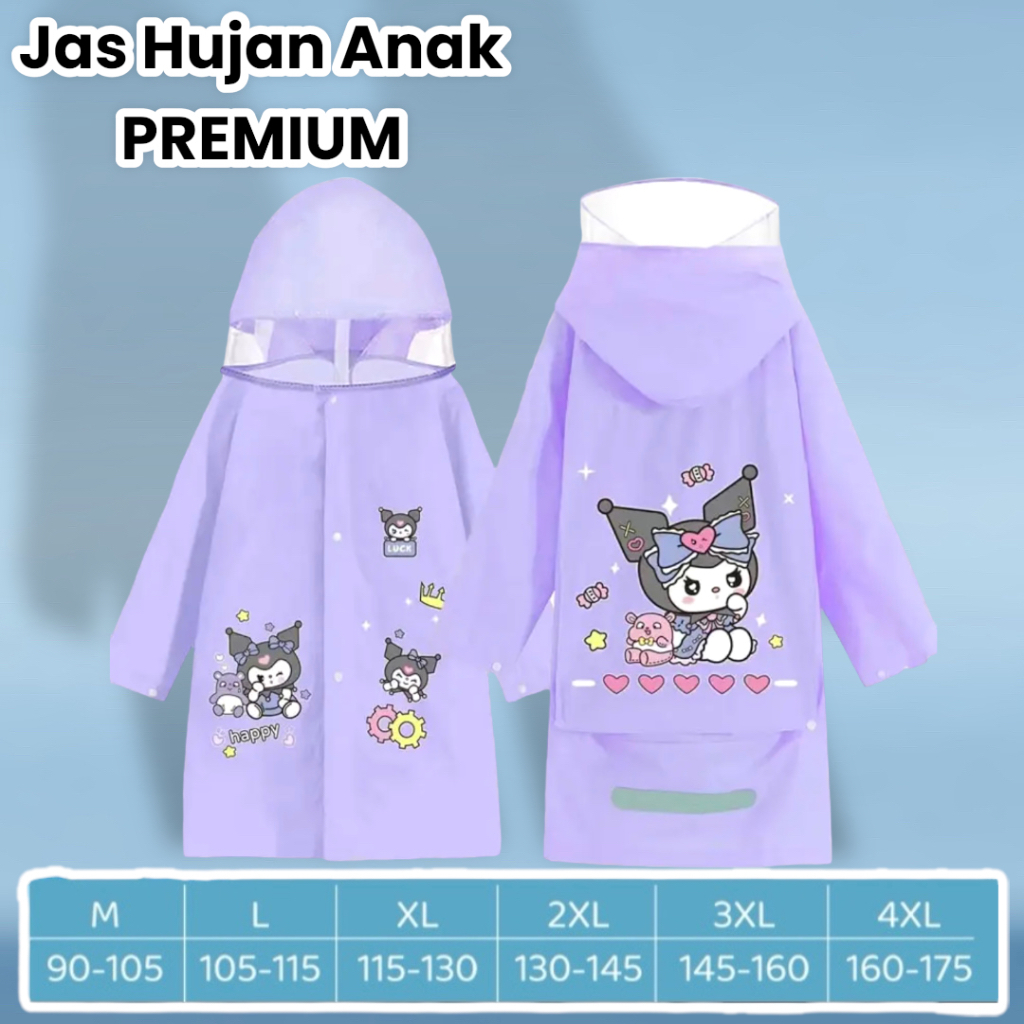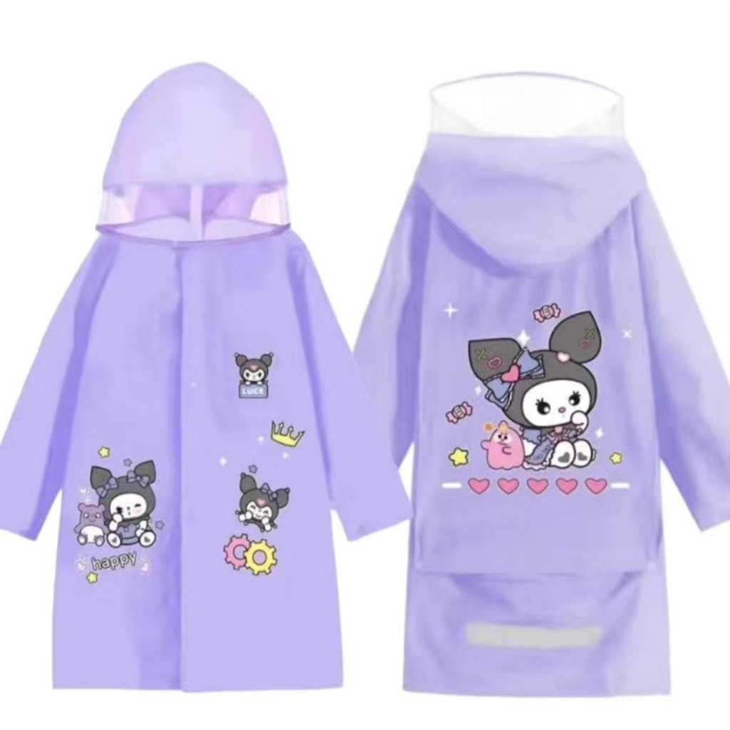 Jas Hujan Anak Karakter Kuromi Premium Tebal Dengan Penutup Tas Ransel Cewek Cowok 6 - 10 Tahun Motif Kartun Lucu Ponco