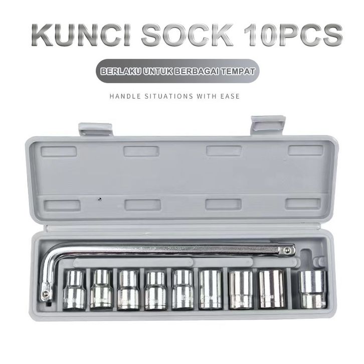 Tool Kit 10 in 1 Kunci Sok Obeng Set Alat Bengkel Serbaguna