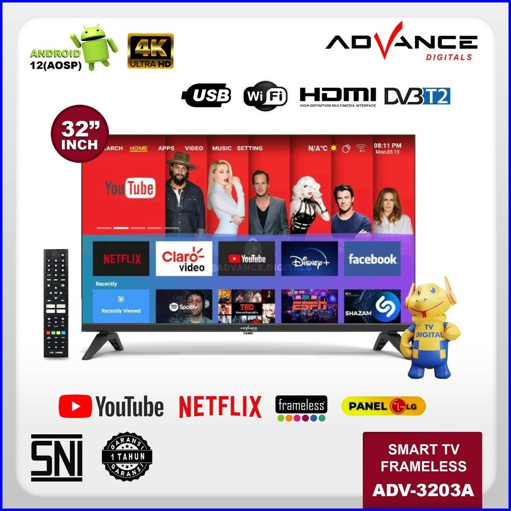 Advance Android Tv Google Tv Advance Adv-3203a Smart Tv Hd 32 Wifi Lan Tv Digital Dvb-t2 C Garansi Resmi 1 Tahun Framele