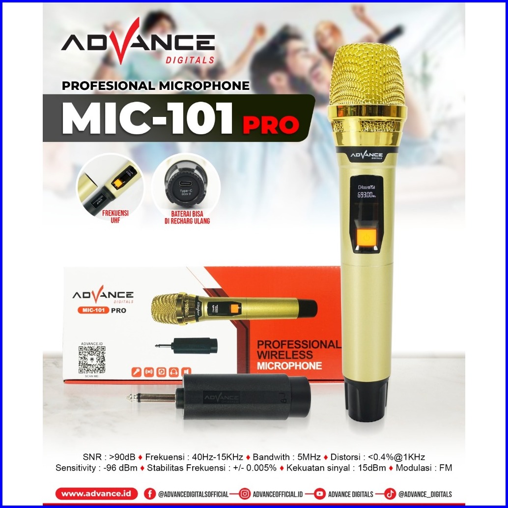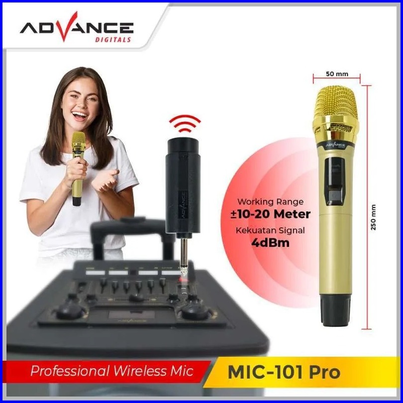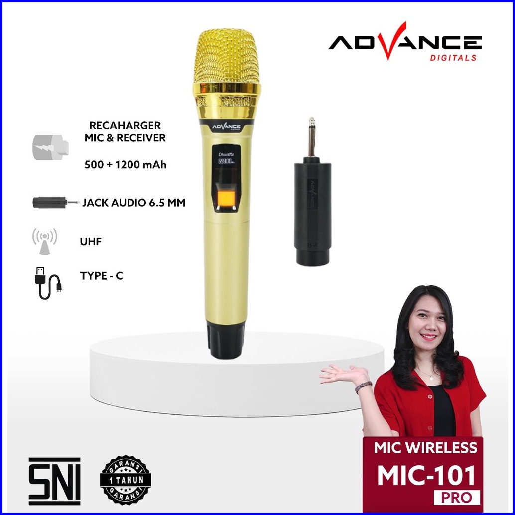 Advance Mic-101 Pro Single Mic Wireless Uhf Nirkabel Recharger Baterai Garansi Resmi 1 Tahun
