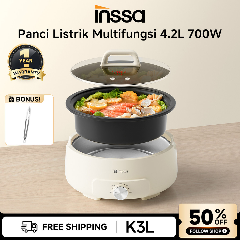 INSSA X Simplus Panci Listrik Multifungsi 4.2L Anti Lengket ,Mudah Dibongkar untuk Pembersihan 700w