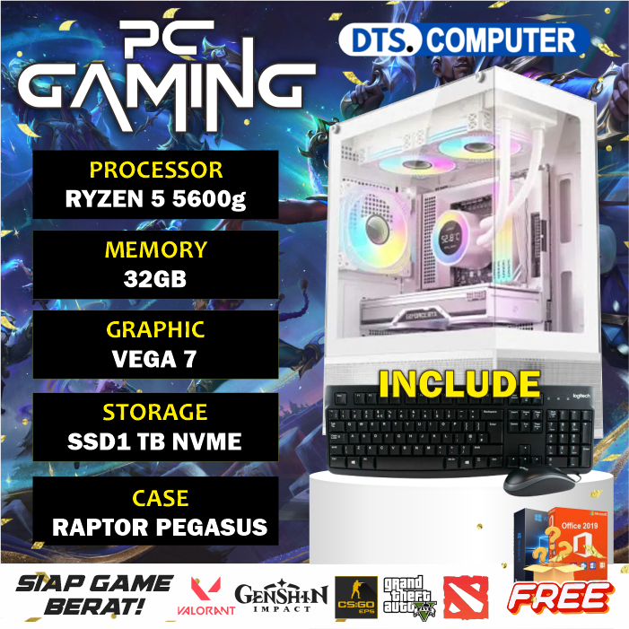 Pc Gaming Ryzen 5 5600G | Ram 32GB | SSD 1TB NVME | Game Render + Keyboard mouse