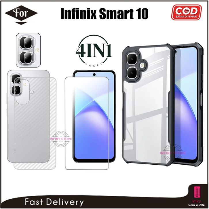 Paket 4IN1 Case Infinix Smart 10 10 Plus SoftCase Fusion Shockproof Transparant Protective Softcase