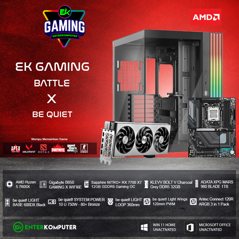 PC Rakitan EK Gaming Battle X Be Quiet - Ryzen 5 RX 7700 XT - Enter Komputer