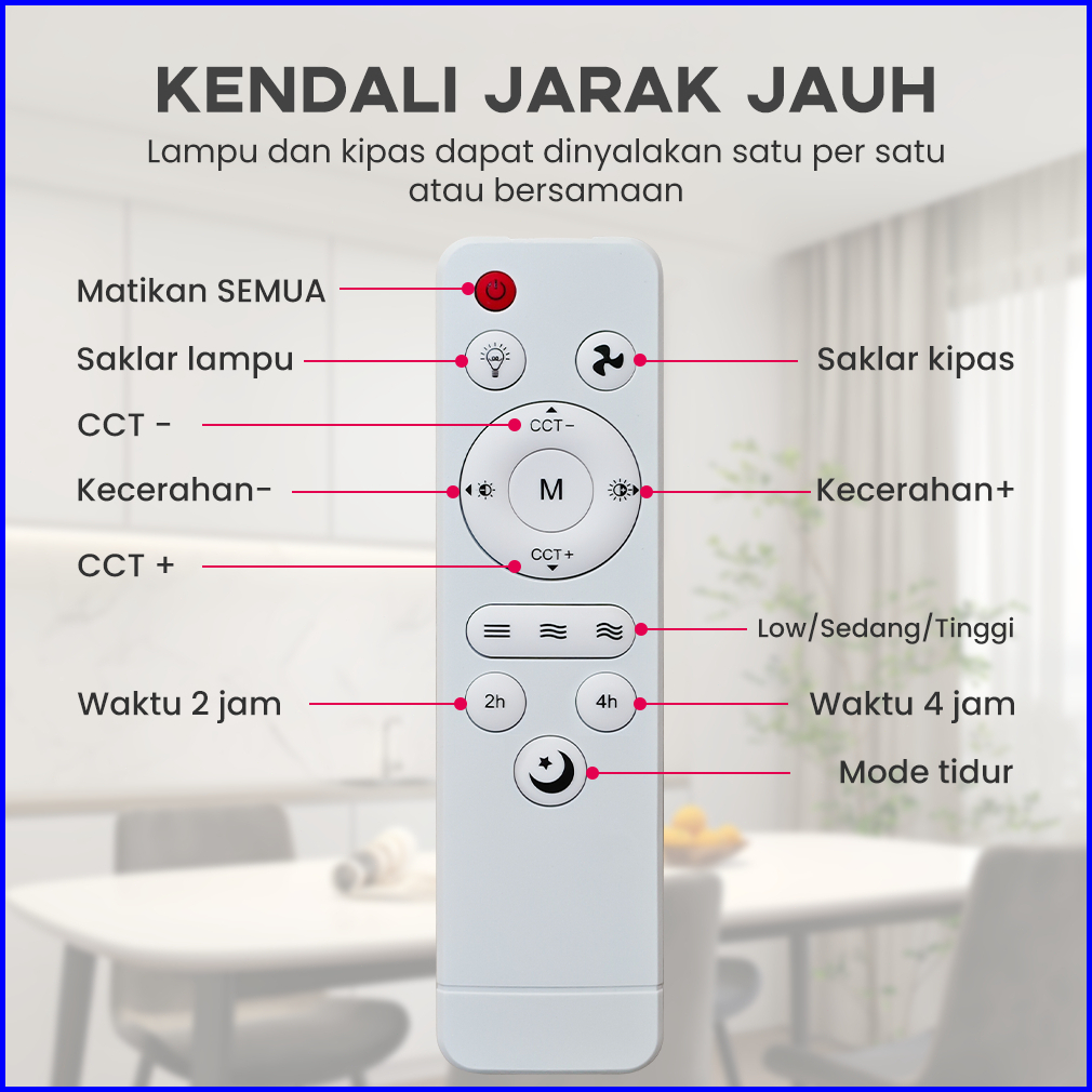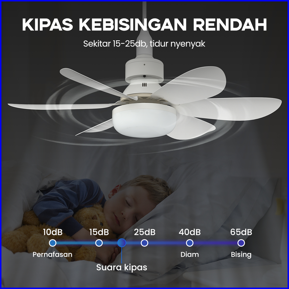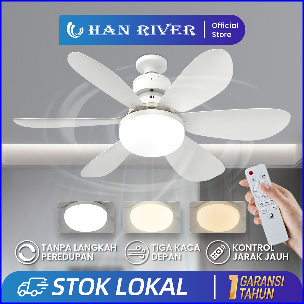 Han River 52cm Kipas Angin Plafon 40w 2in1 Lampu Kipas Angin Led E27 Multifungsi Dengan Peredupan Remote Control