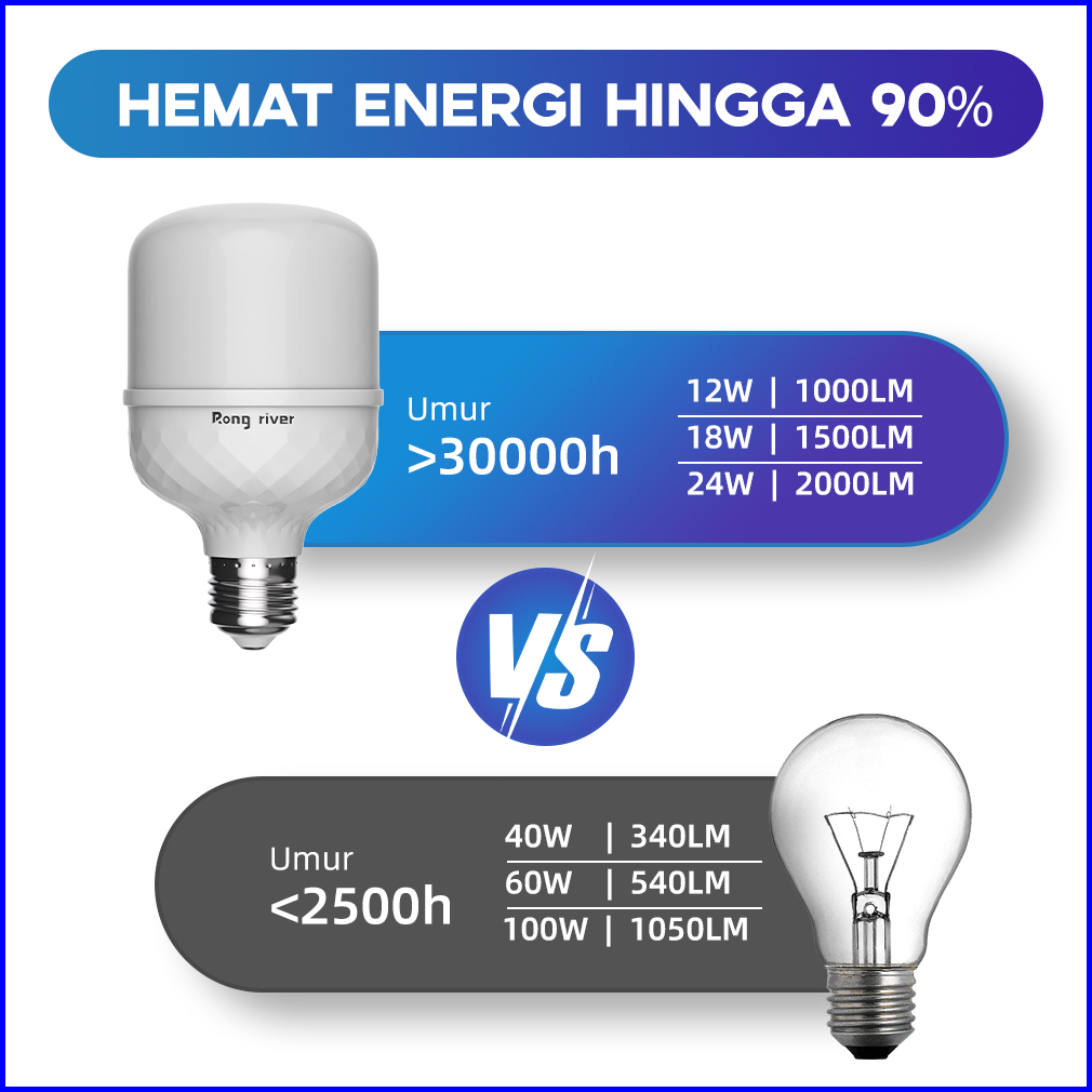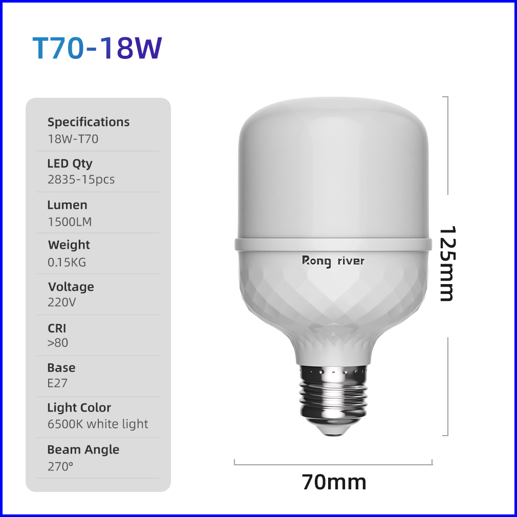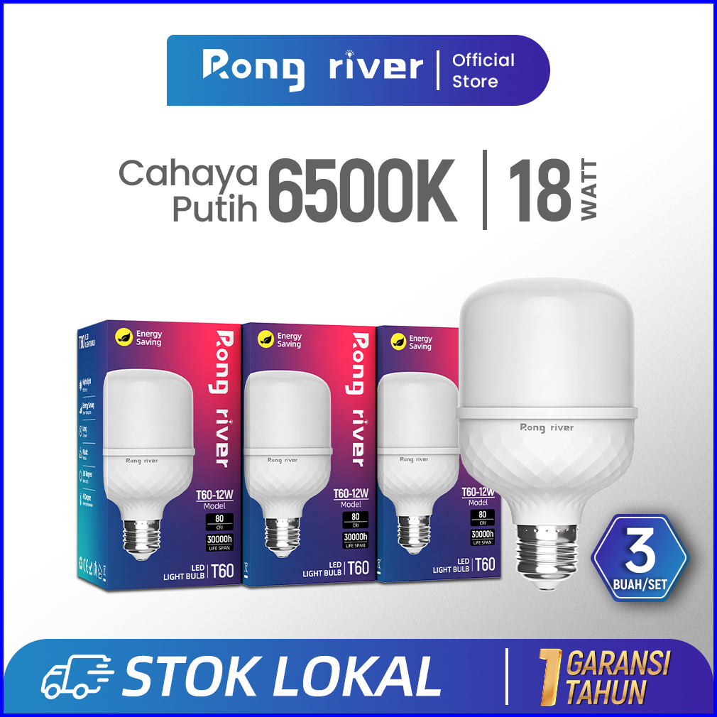 Rong River 3buah 18watt Lampu Led Bohlam Cahaya Putih 6500k Bohlam Led