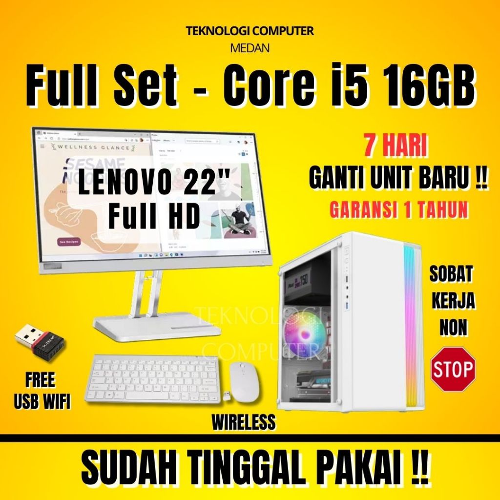 Core i5 ‖ White ‖ Full Set 22" Lenovo ‖ Komputer Kantor Admin Sekolah ‖ CPU PC Rakitan