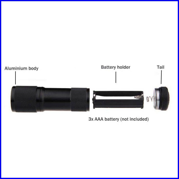 Taffled Senter Led Mini Ultraviolet Uv 400nm 9 Led - Uv-395