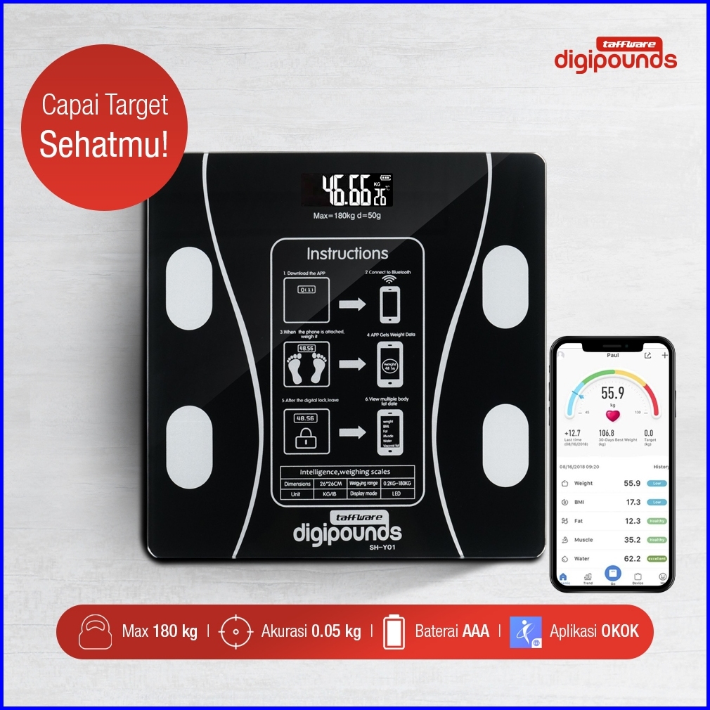 Taffware Digipounds Timbangan Badan Digital Health Scale 180kg Sh-y01