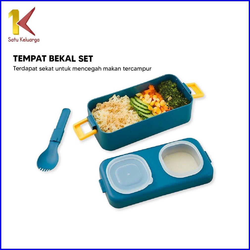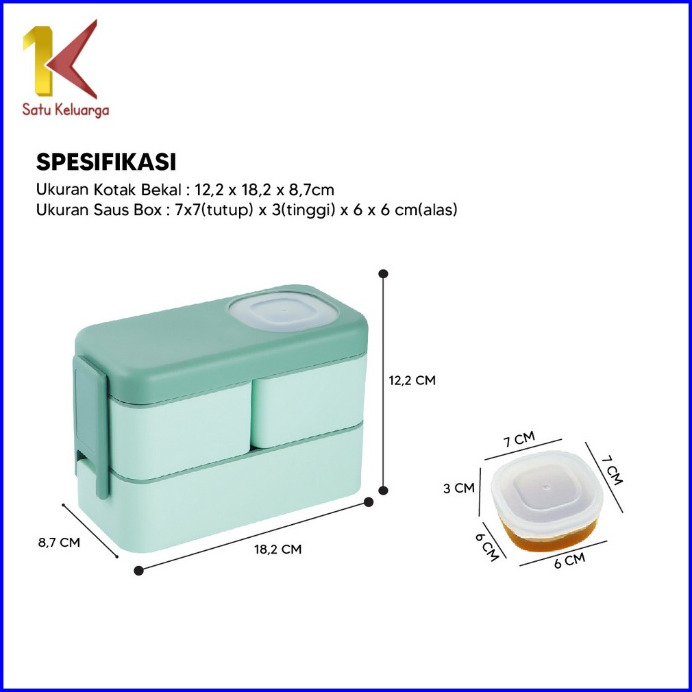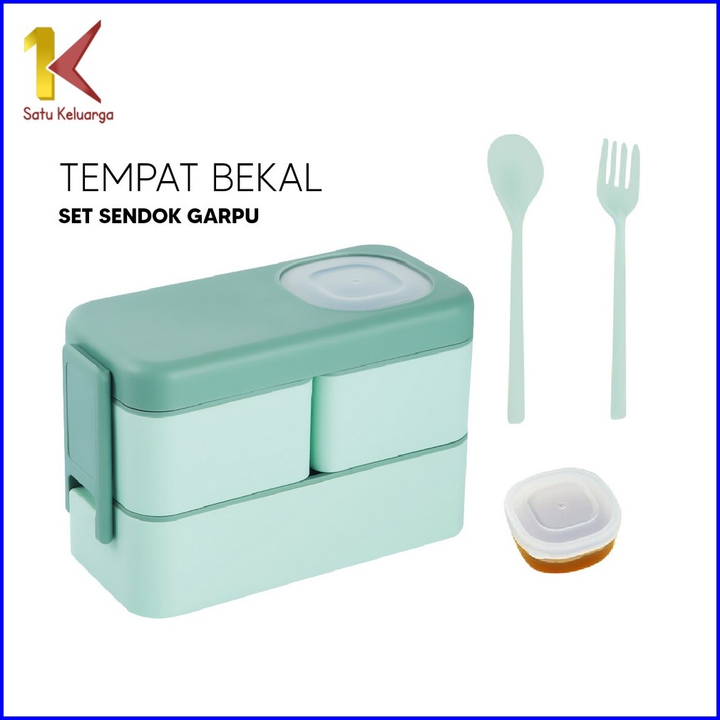 Satu Keluarga Kotak Makan 2 Tingkat 1050ml Ada Sauce Cup C779 Rantang Makanan Set Anti Tumpah Lunch Box 2 Layer Portable