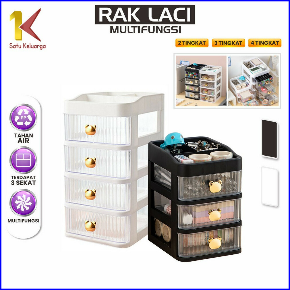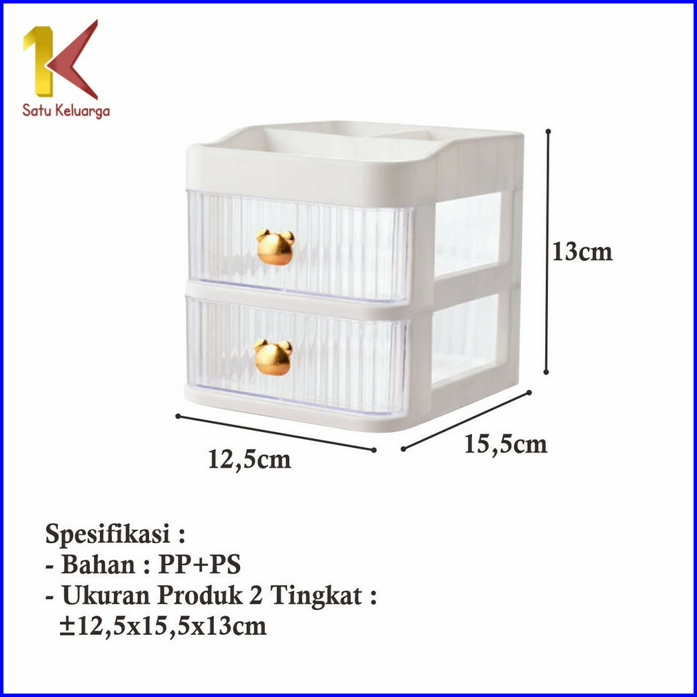 Satu Keluarga Rak Kosmetik Serbaguna 3 Laci K166 Desktop Drawer Rak Susun Serbaguna Tempat Make Up Storage Box Bear Rak