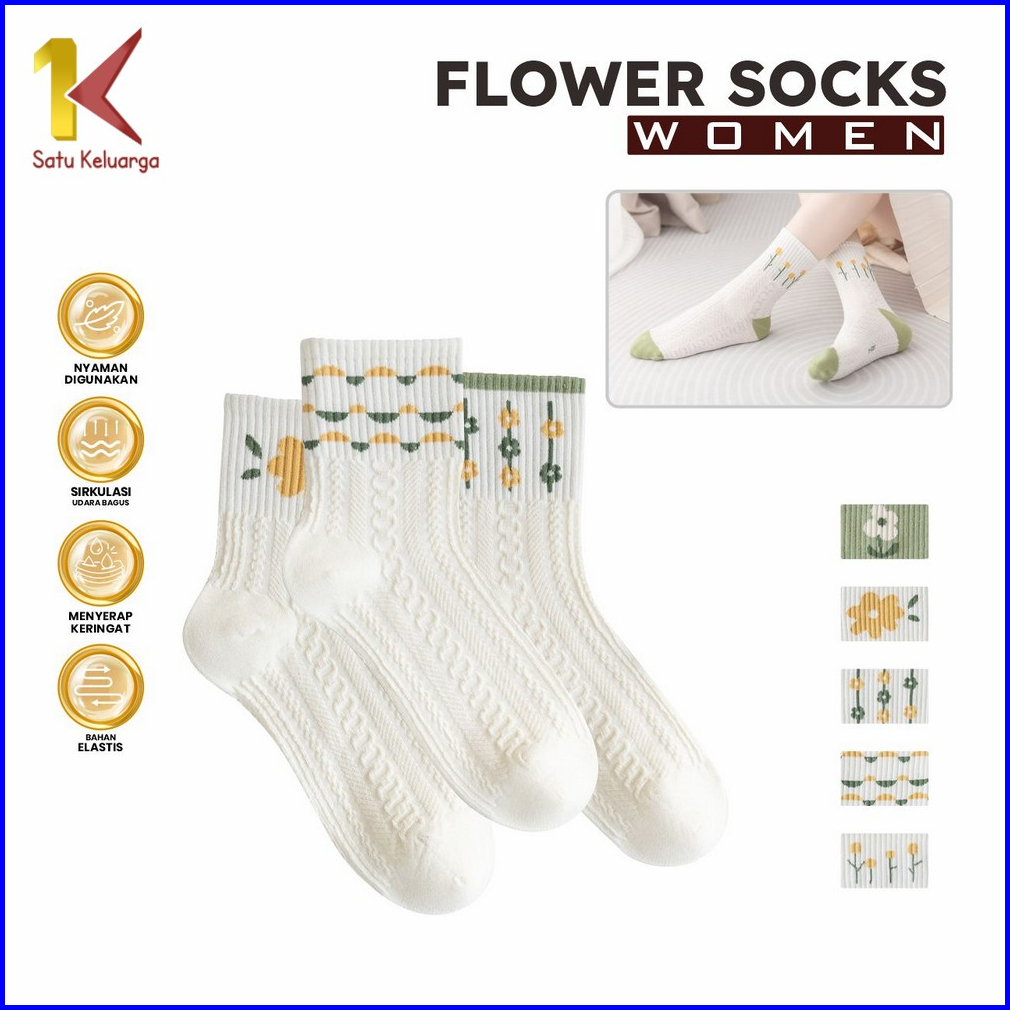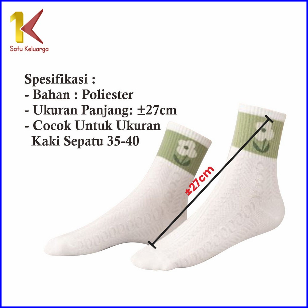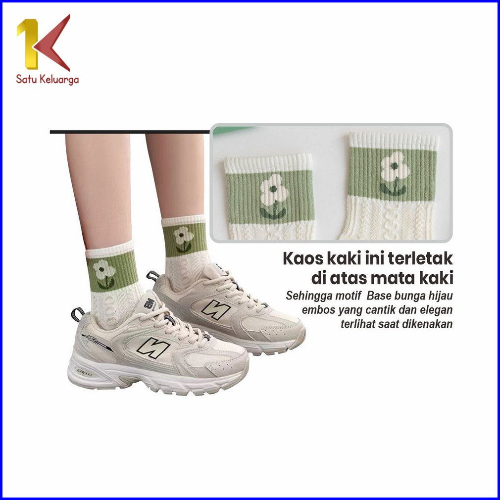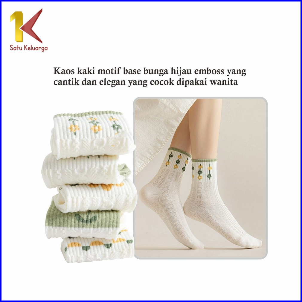 Satu Keluarga Kaos Kaki Pendek Wanita Motif Bunga Hijau Emboss P578 Kaos Kaki Wanita Aksen Bunga Korean Fashion Kaus Kak