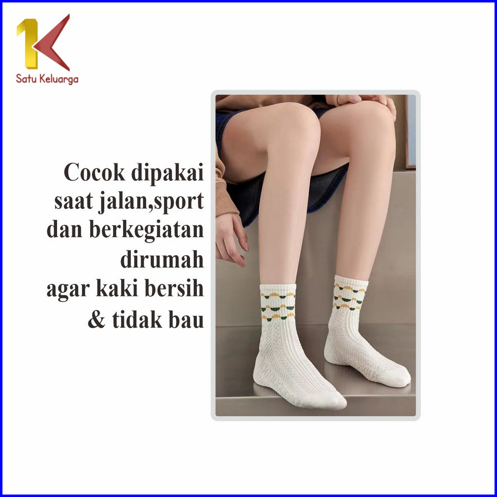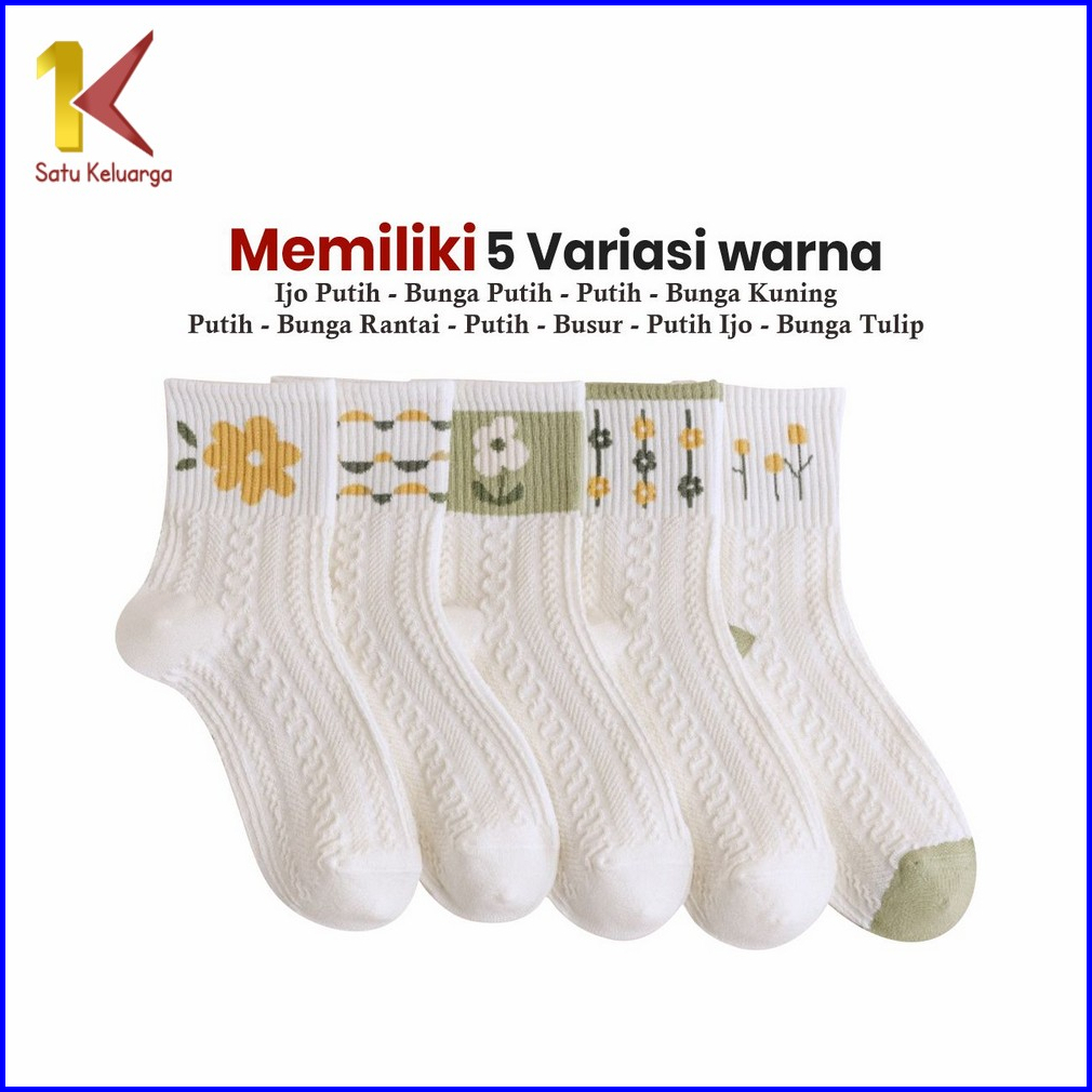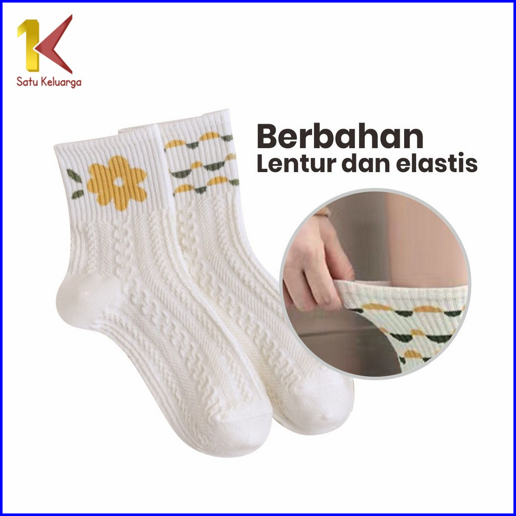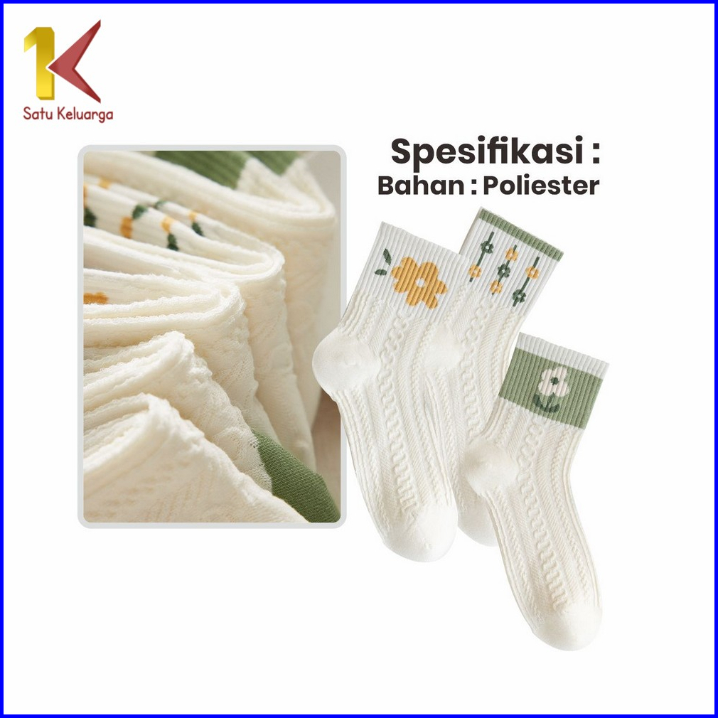 Satu Keluarga Kaos Kaki Pendek Wanita Motif Bunga Hijau Emboss P578 Kaos Kaki Wanita Aksen Bunga Korean Fashion Kaus Kak