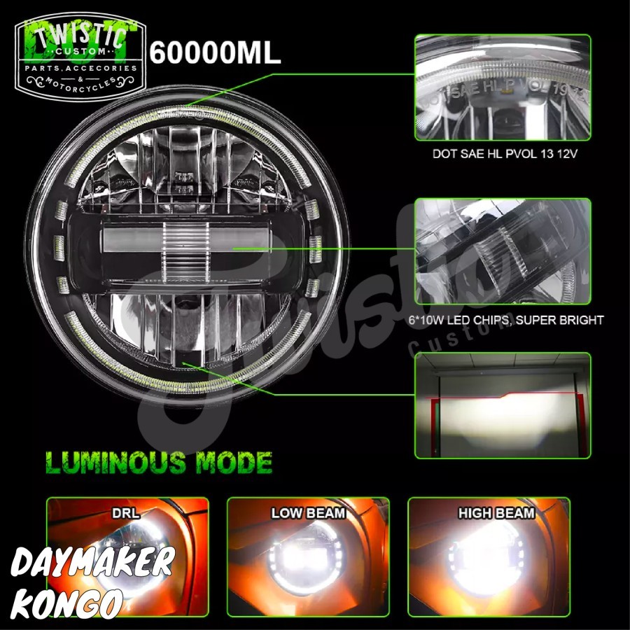 Headlamp Lampu Depan 7" Kongo Lampu Headlamp LED Mobil Jeep JK JL Wrangler Rubicon