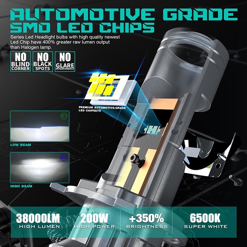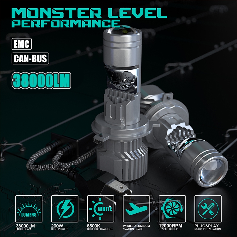 NEOGLOW LED Lampu depan untuk Mobil Dengan proyektor Luminos 200W 38000LM 6500K IP68