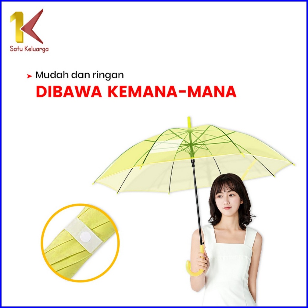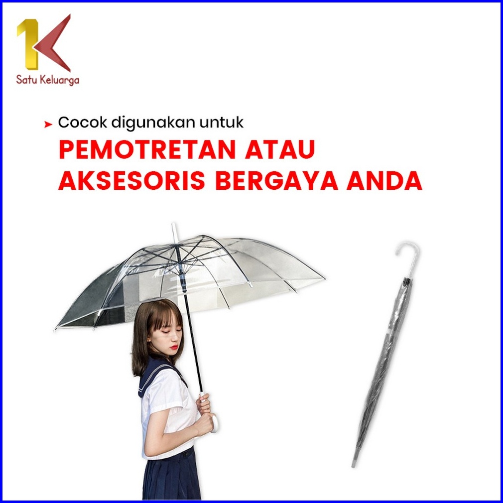 Satu Keluarga Payung Transparan Korea Japanese Style C433 Payung Polos Tongkat Bening Transparan Fashion Drama Korea Sim