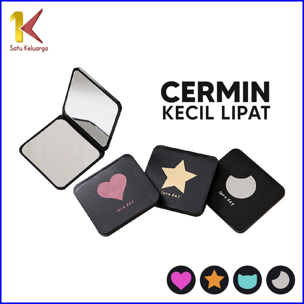 Satu Keluarga Cermin Mini Travel C584 Cermin Saku Kaca Rias Makeup Lipat Double Model Segiempat Cermin Makeup Petak Cerm