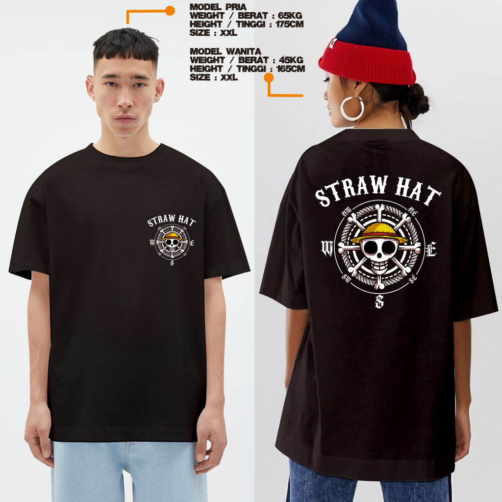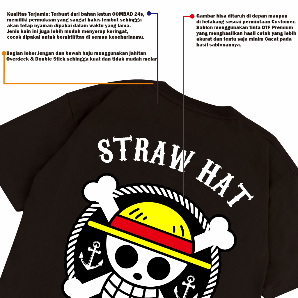 Kaos Pria Kaos One Piece Tengkorak Baju Kaos Distro Anime ONE PIECE MONKEY D LUFFY Topi Jerami