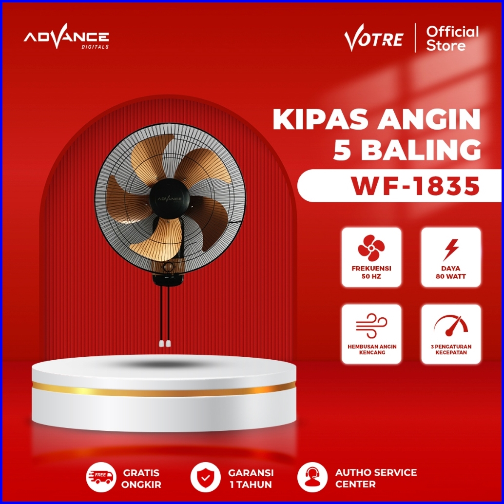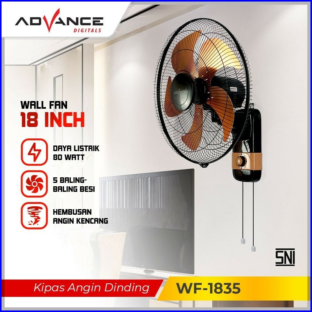 Advance - Kipas Angin Dinding 5 Baling-baling Stainless 18 Inch 80 Watt Wf-1835 Kipas Angin Wf-16 Dam Kipas Angin Karakt
