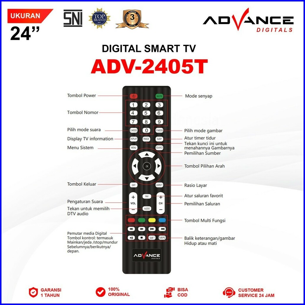 Adv-2405t Advance 24 Tv Digital Layar Lcd Led Full Hd Garansi Resmi 1 Tahun Garansi Layar 3 Tahun