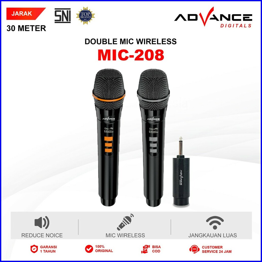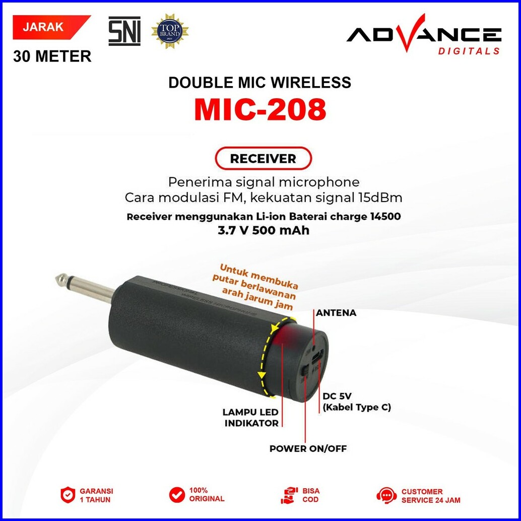Advance Mic-208 Double Mic Wireless Recharger Bisa Digunakan Untuk Souncard Speaker Garansi Resmi 1 Tahun