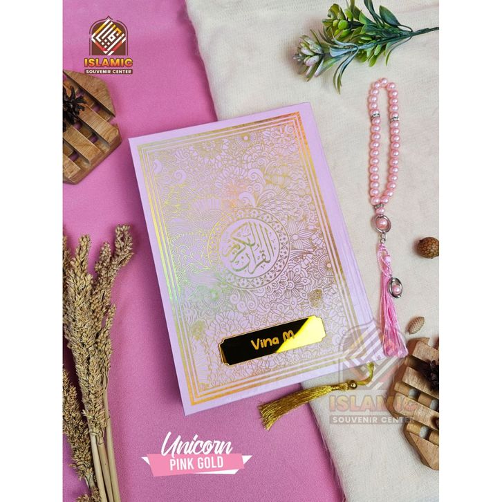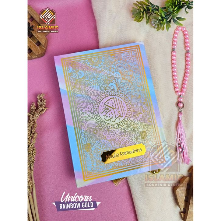 Al Quran Custom Nama Terjemahan Pelangi Unicorn Rainbow Custom Nama Akrilik Quran Pelangi Seserahan Pernikahan
