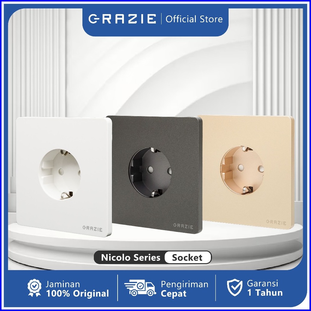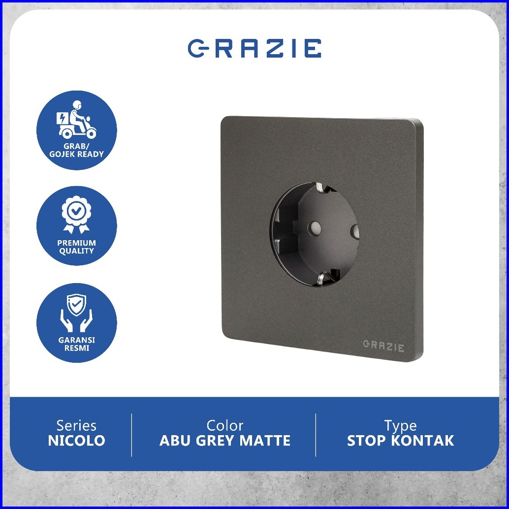 Grazie Nicolo Gray Black Series Stop Kontak - 1 Gang Dengan Child Protection