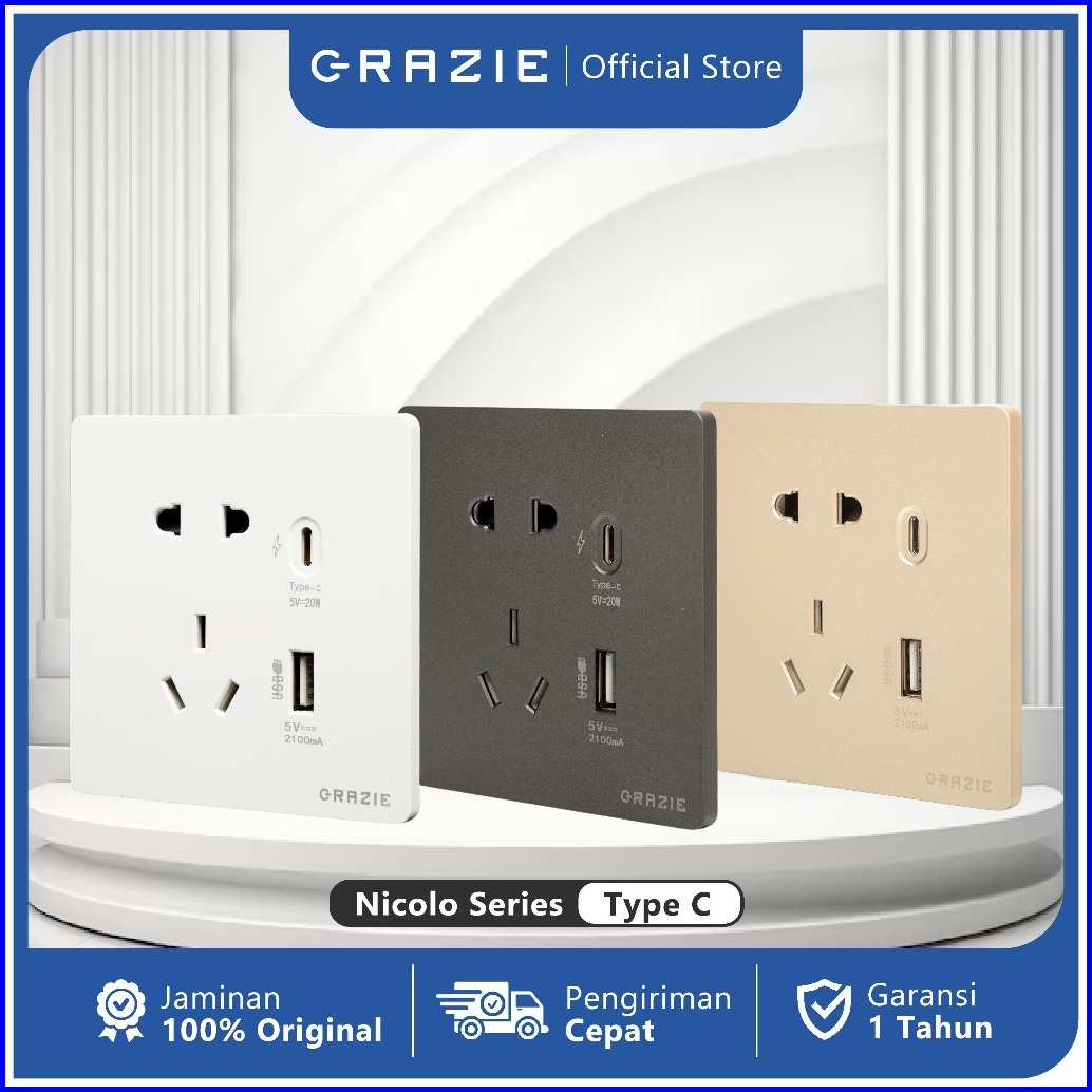 Grazie Fast Charging Colokan Dinding Stop Kontak Universal Uk Eu Us 2 Port Usb Type C