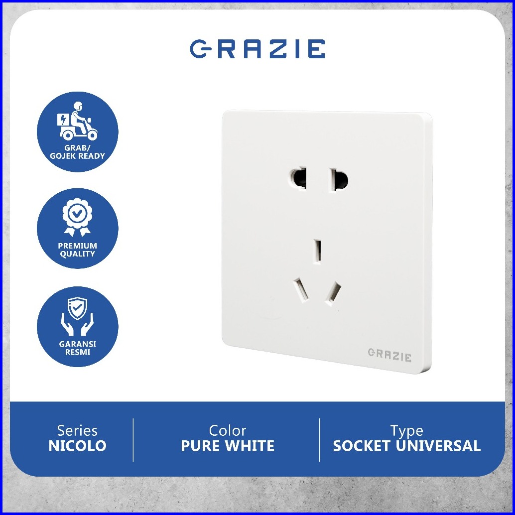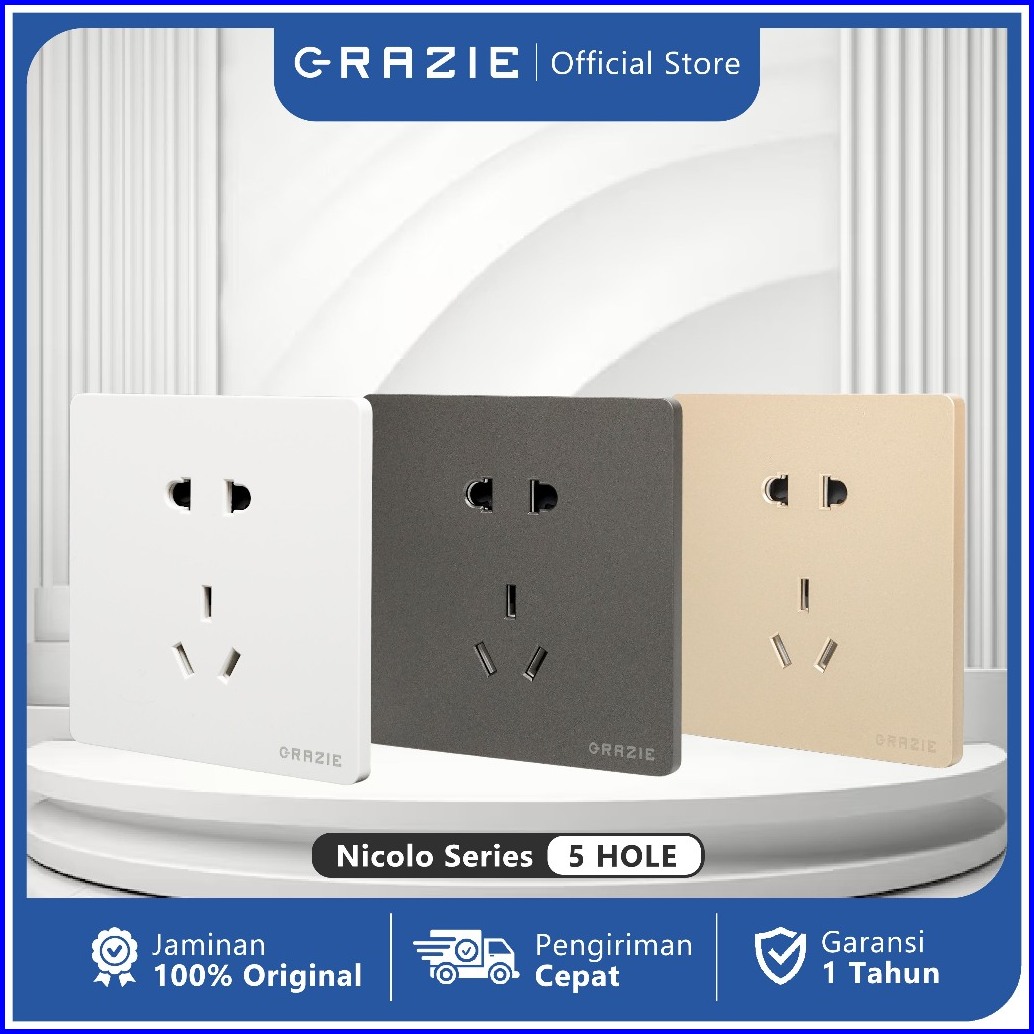 Grazie Nicolo Gray Black Series Stopkontak Child Protection Flame Retardant Colokan Universal 5 Hole