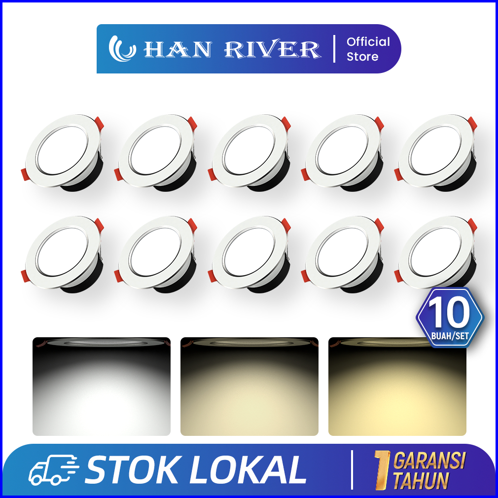 Han River 10buah 5w Lampu Downlight 3 Warna Lampu Downlight Plafon