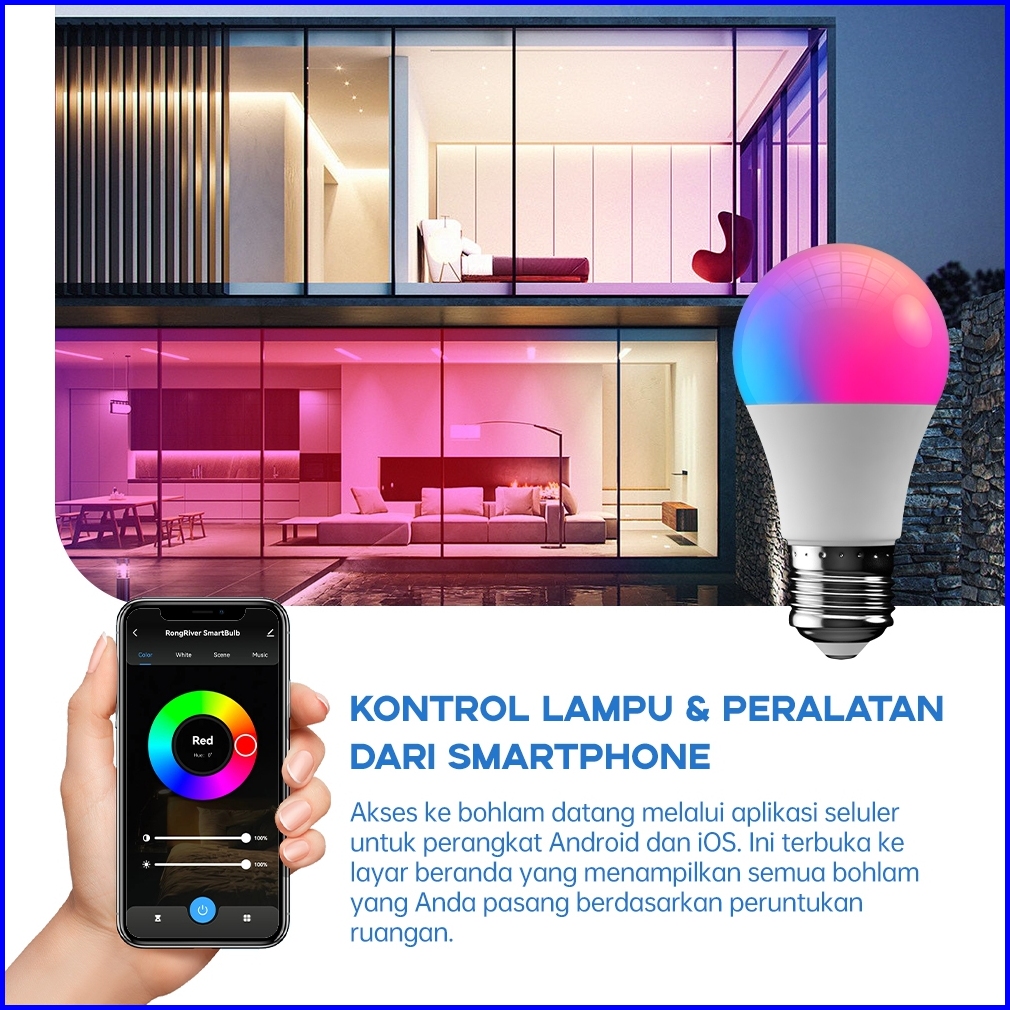 Han River 10w 3buah Lampu Bluetooth Smart App Kontrol Lamp Led Bohlam 270 Sudut Pancaran