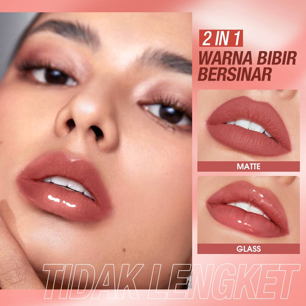 O.TWO.O 2 In 1 Lipgloss Matte & Gloss Long Lasting Plump Kiss-Proof Lip Makeup TERLARIS