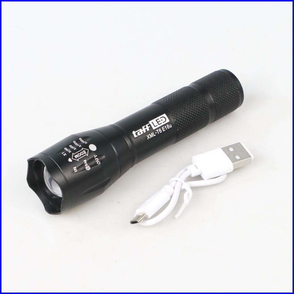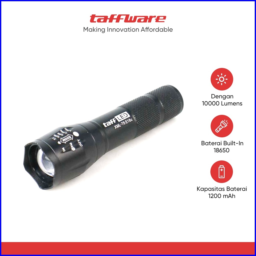 Taffled Senter Led Tactical Usb Rechargable Flashlight Zoomable Xml-t6 10000 Lumens - E18u