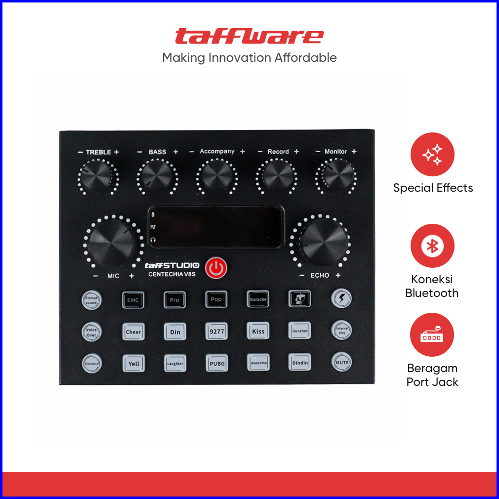 Taffstudio Mixer Usb External Sound Card Bluetooth Amplifier Live Broadcast Recording Special Effect - V8s - Black