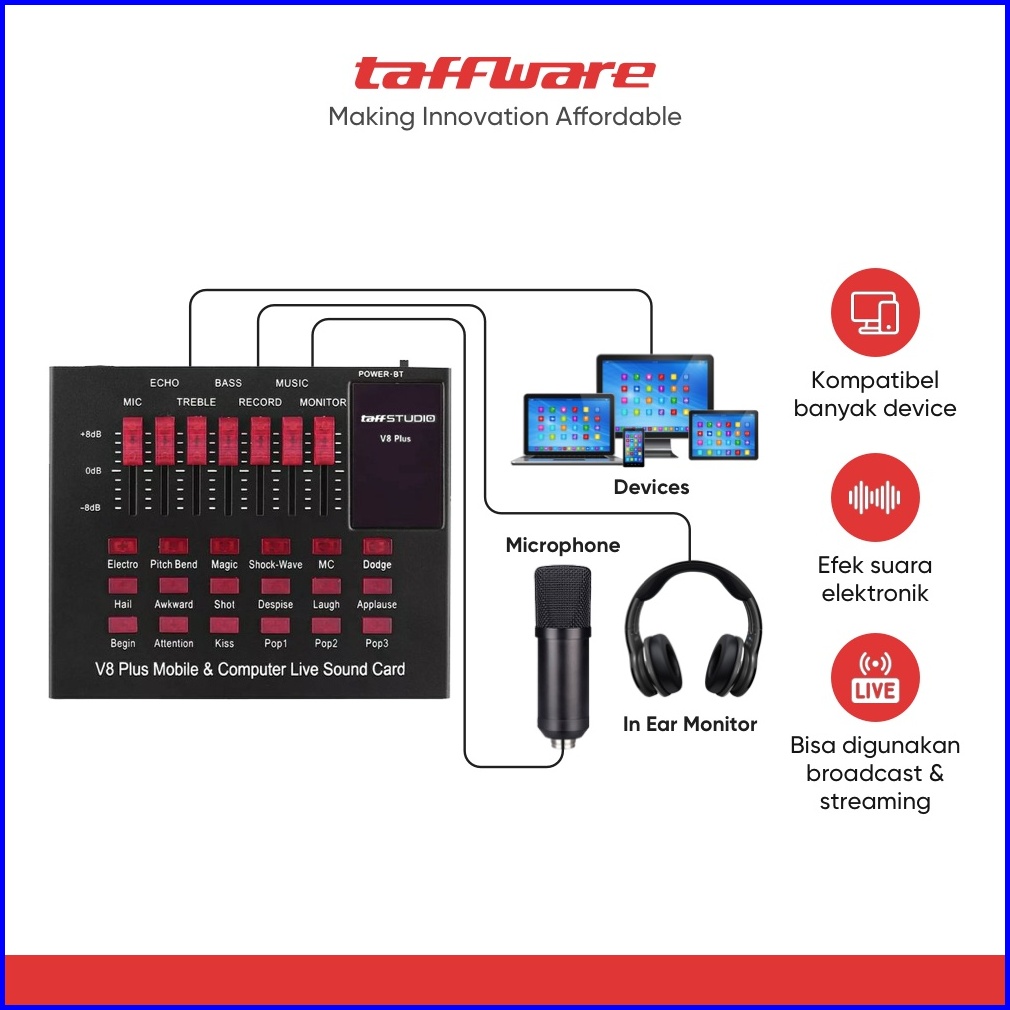 Taffstudio Bluetooth Audio Usb Ext Soundcard Live Bcast V8 Plus Black