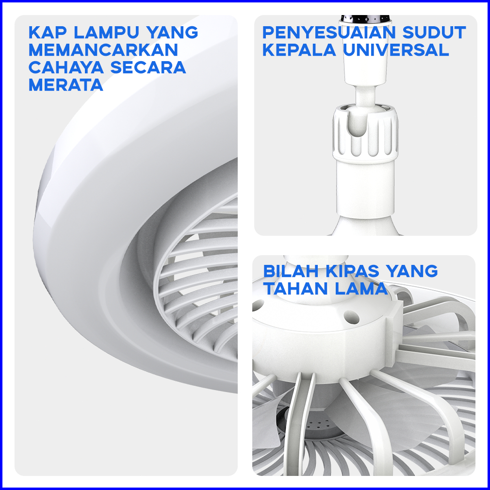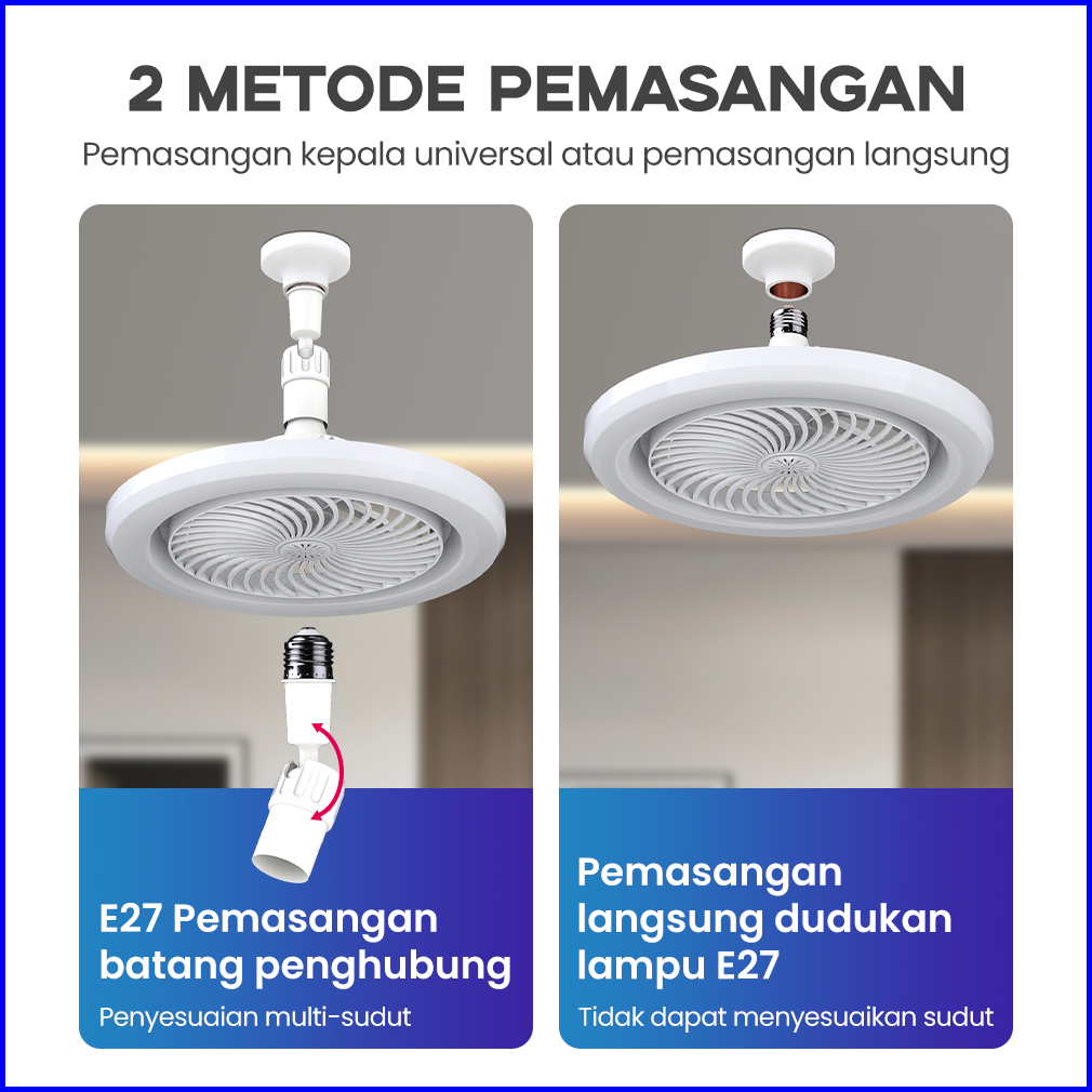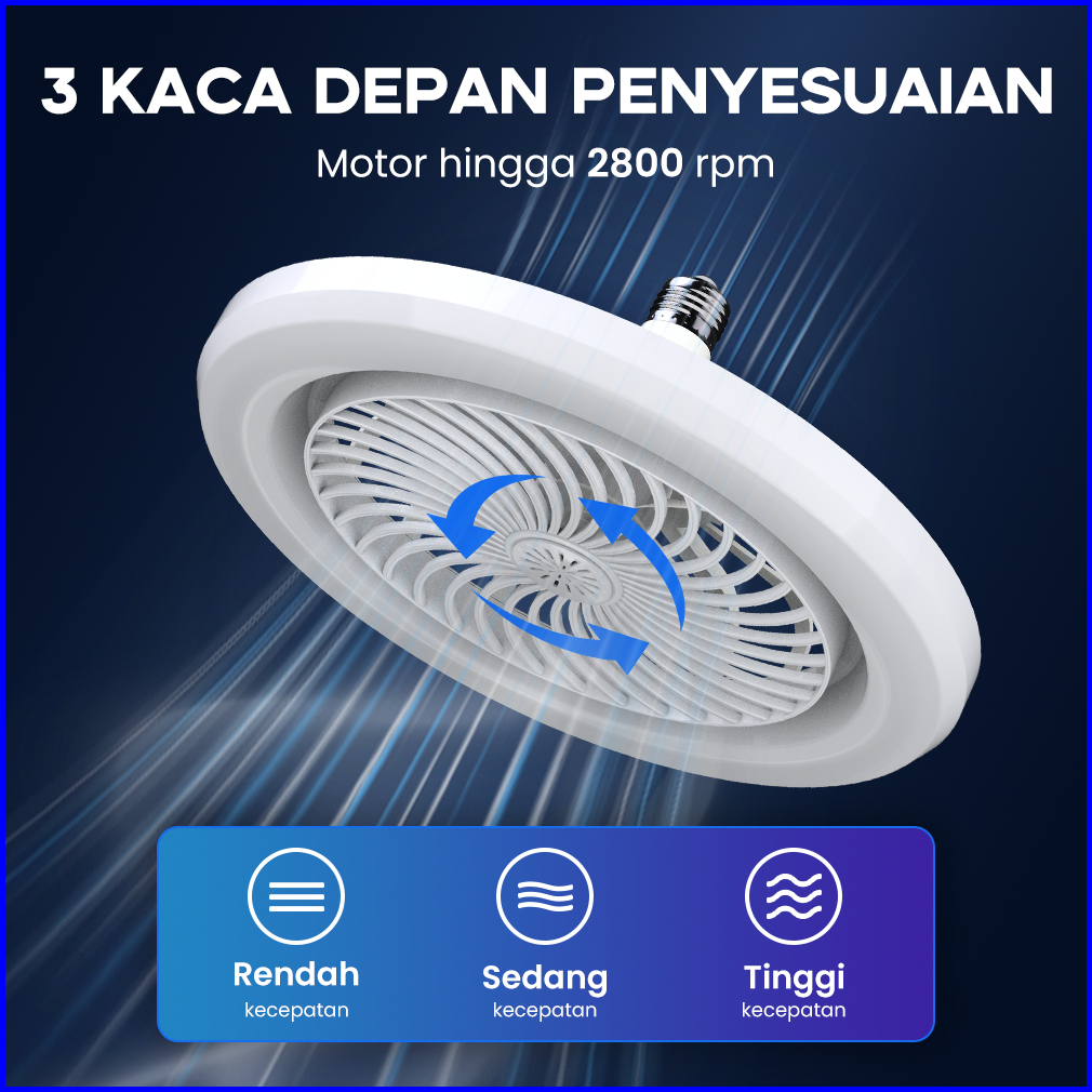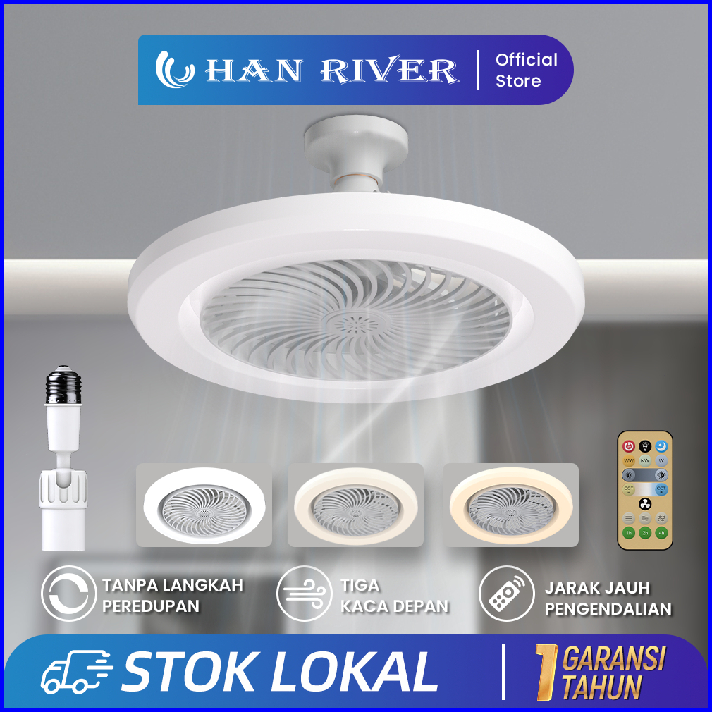 Han River Rong River 30w 2in1 Lampu Kipas Angin Plafon Lampu 3 Warna Remote Dapat Diatur 360 E27 Lamp Holder