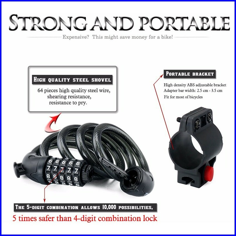 Taffguard Gembok Sepeda Kode Angka 5 Digit - Sj008 - Black